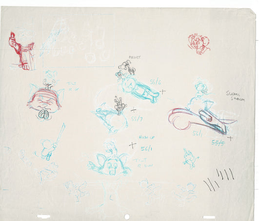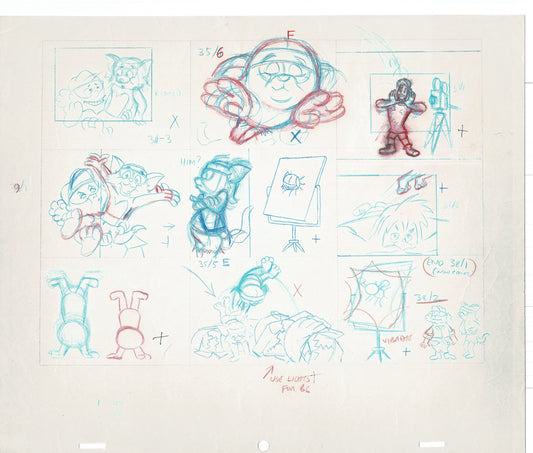 Little Rascals 2 LOT Production Animation Cel Drawings with Alfalfa from Hanna Barbera 1982-83 L3
