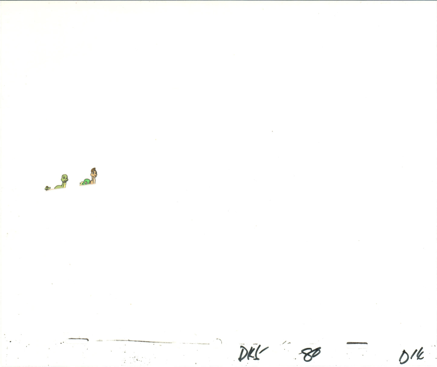 Adorable dinosaur in these cels! The series followed Dink and his friends in the Green Meadow. The cels measures approx 10.5" x 12.5" each.