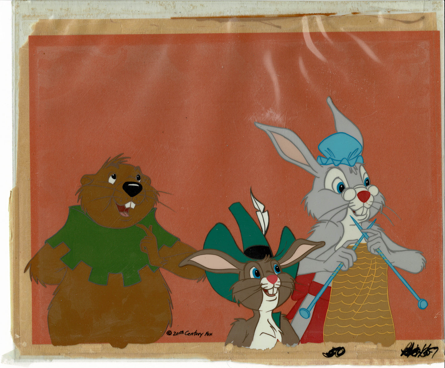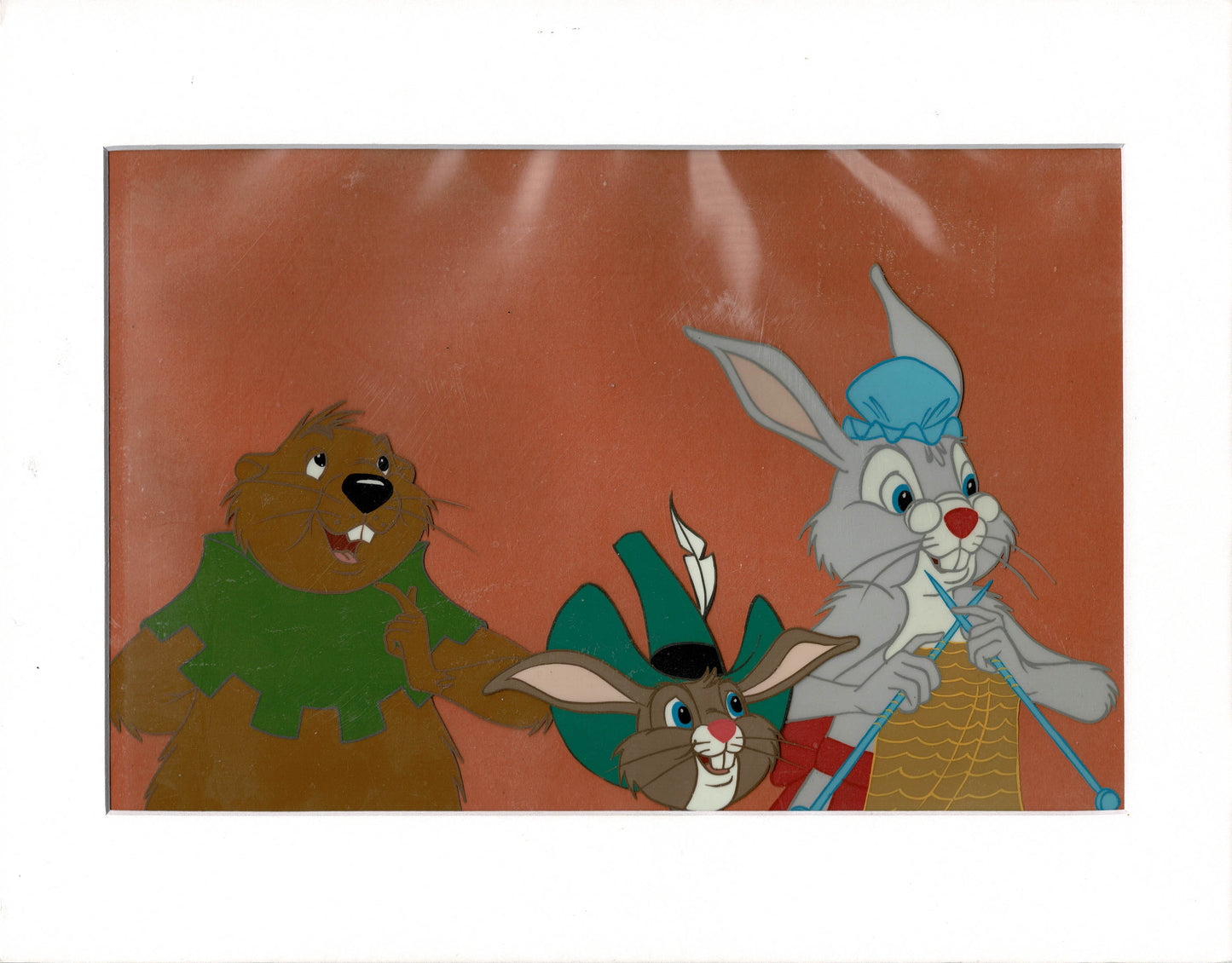 9 to 5 was a HUGE hit for its stars, Dolly Parton, Lily Tomlin and Jane Fonda. It spawned a TV show and even a musical! There is a Snow White-esque animation sequence in it done by Mishkin-Hellmich. This is a cel setup from that sequence.