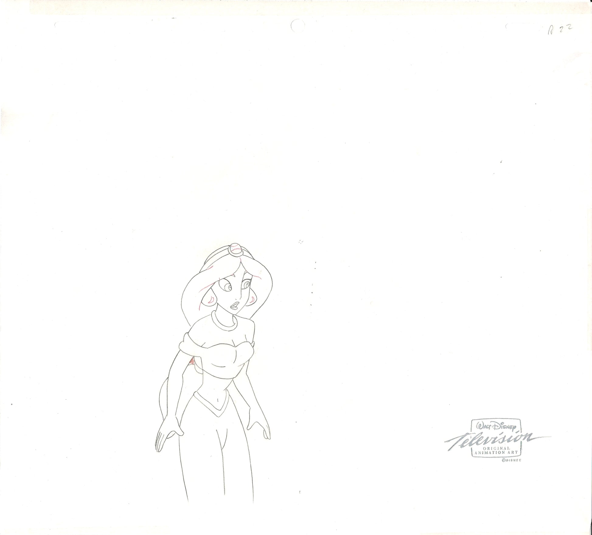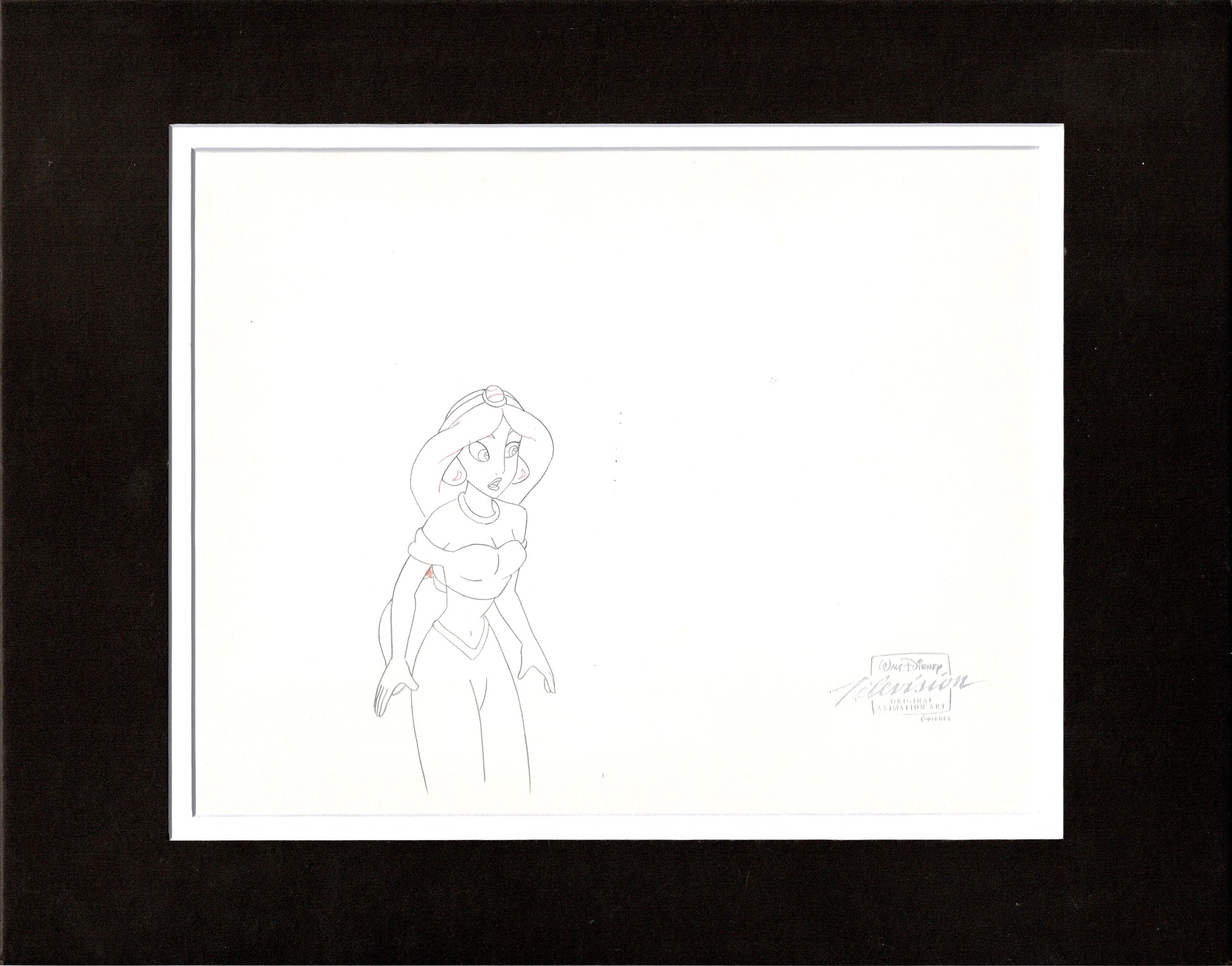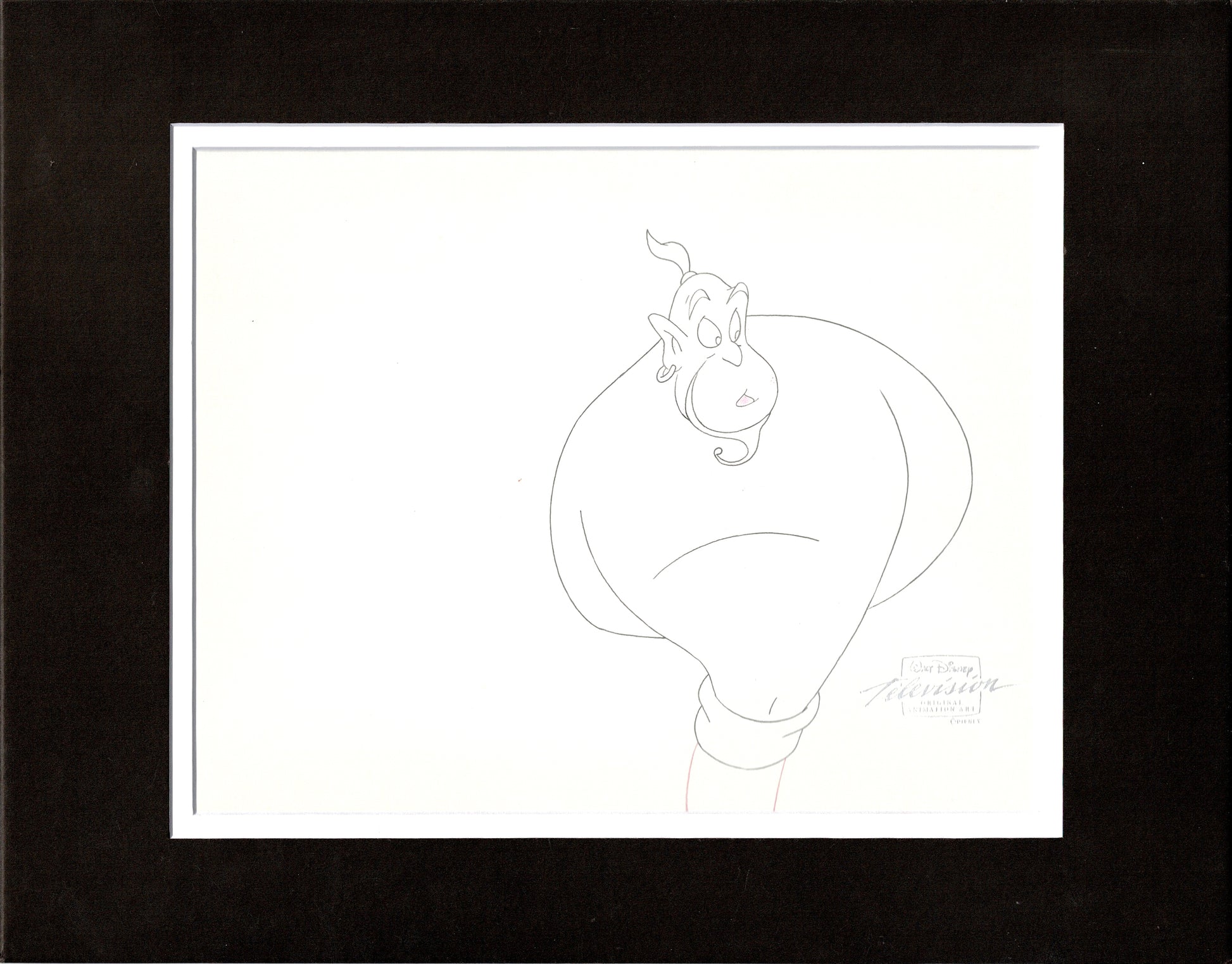 Aladdin was part of the Disney Renaissance, with the feature releasing in 1992. Disney released a sequel, “The Return of Jafar” direct to video in 1994 and this is from that movie! The TV show that ran from 1994-1995 takes place right after the events that happen in this movie. This is a rare cel and drawing - in that they have the main character listed above! The cel has been placed on a color print background. Both the cel and the drawing have the Walt Disney seal and, under the matting, each measure approximately 9" x 10.5". The set was originally sold at the Disney Store!
