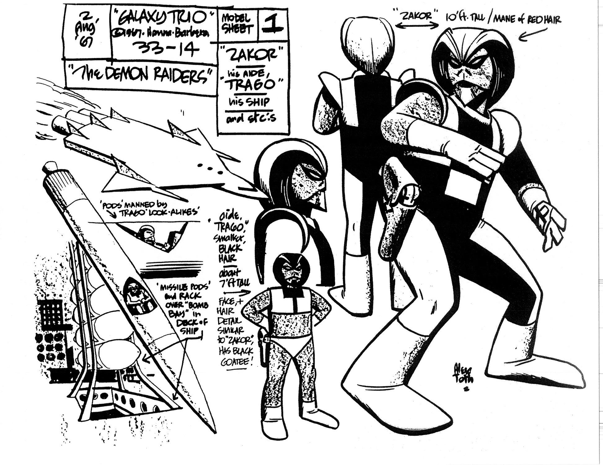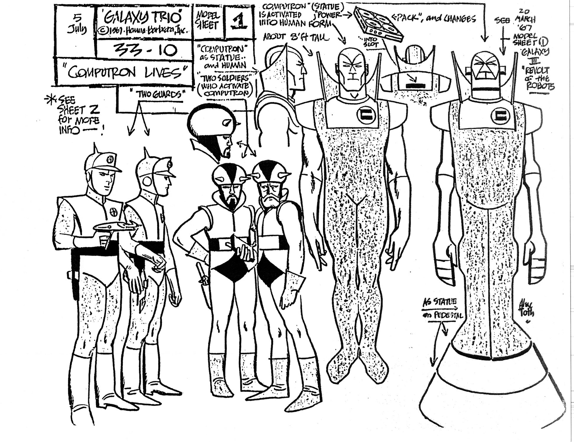 Alex Toth Galaxy Trio Model Sheet Copy Lot of 22 pages 1967 Cartoon Hanna Barbera