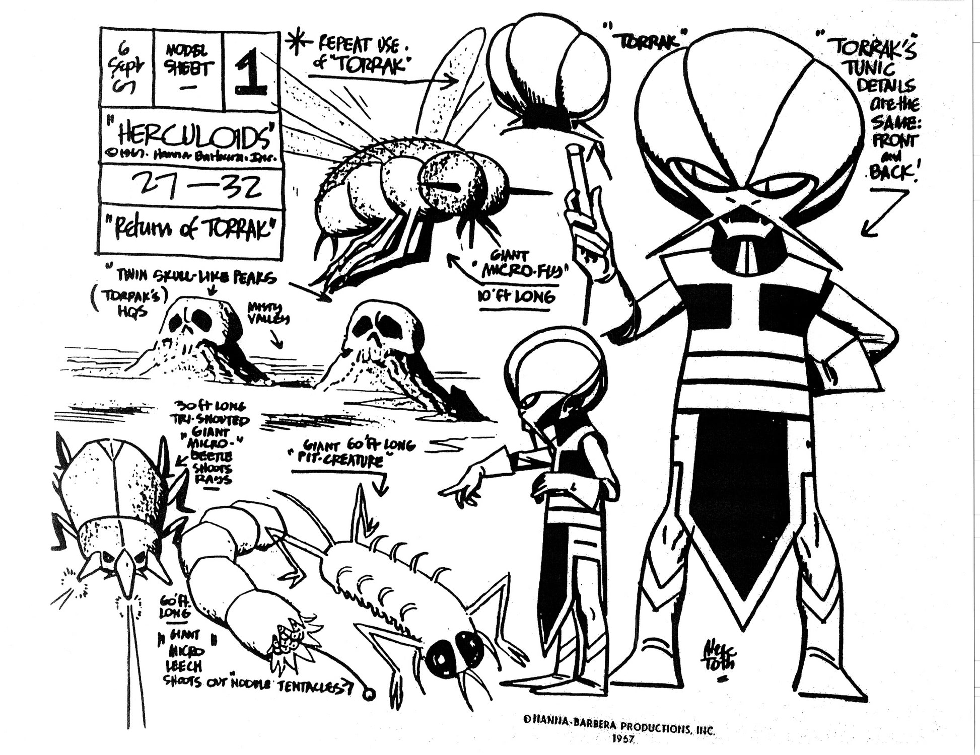 Alex Toth is of course a legend and his output for Hanna Barbera in the early days is just incredible. Model sheets were handed out to animators to make sure that the characters/props/settings were consistent when multiple animators drew them for the show.