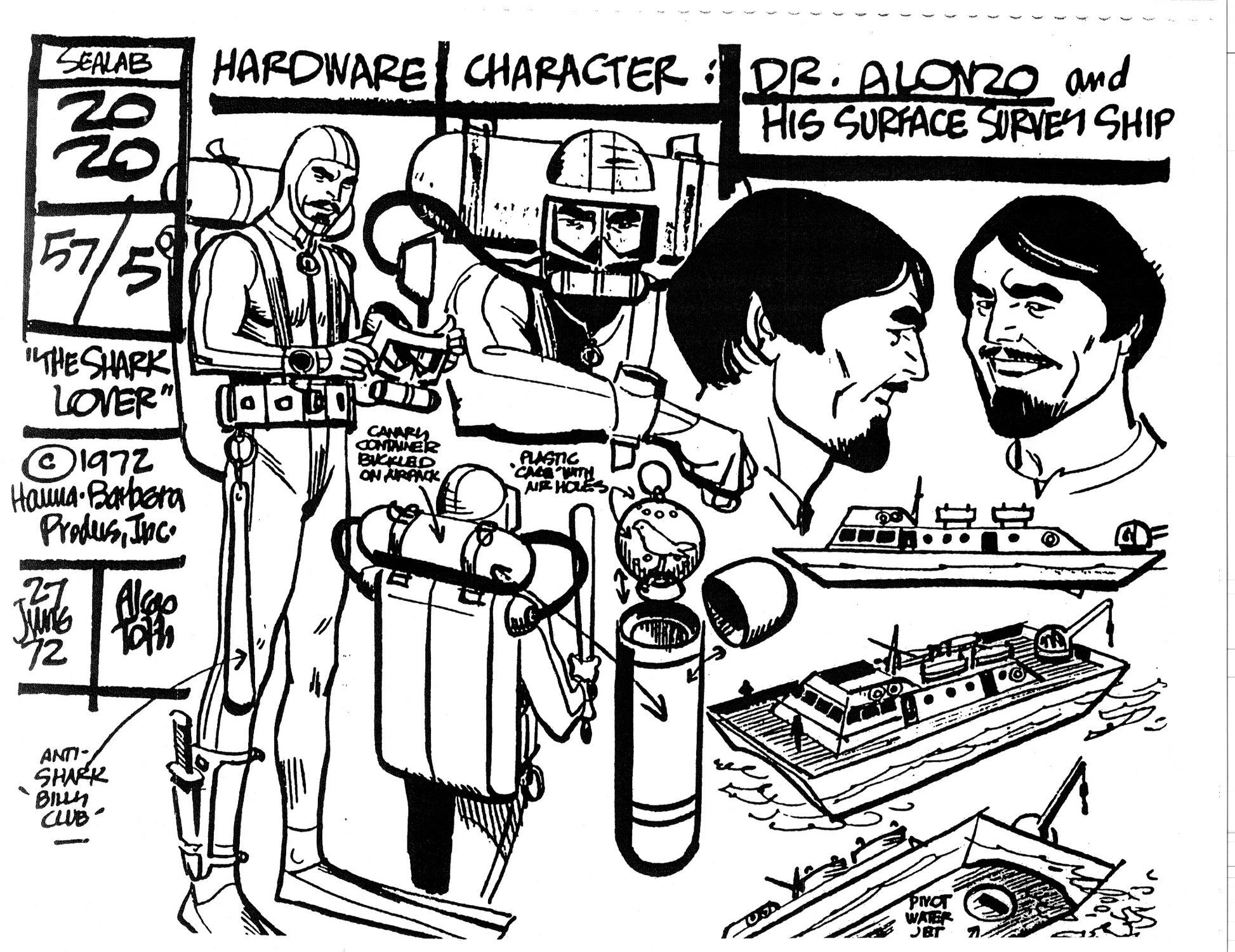 Alex Toth Sealab 2020 Model Sheet Copy Lot of 35 pages of the Cartoon by Hanna Barbera 2