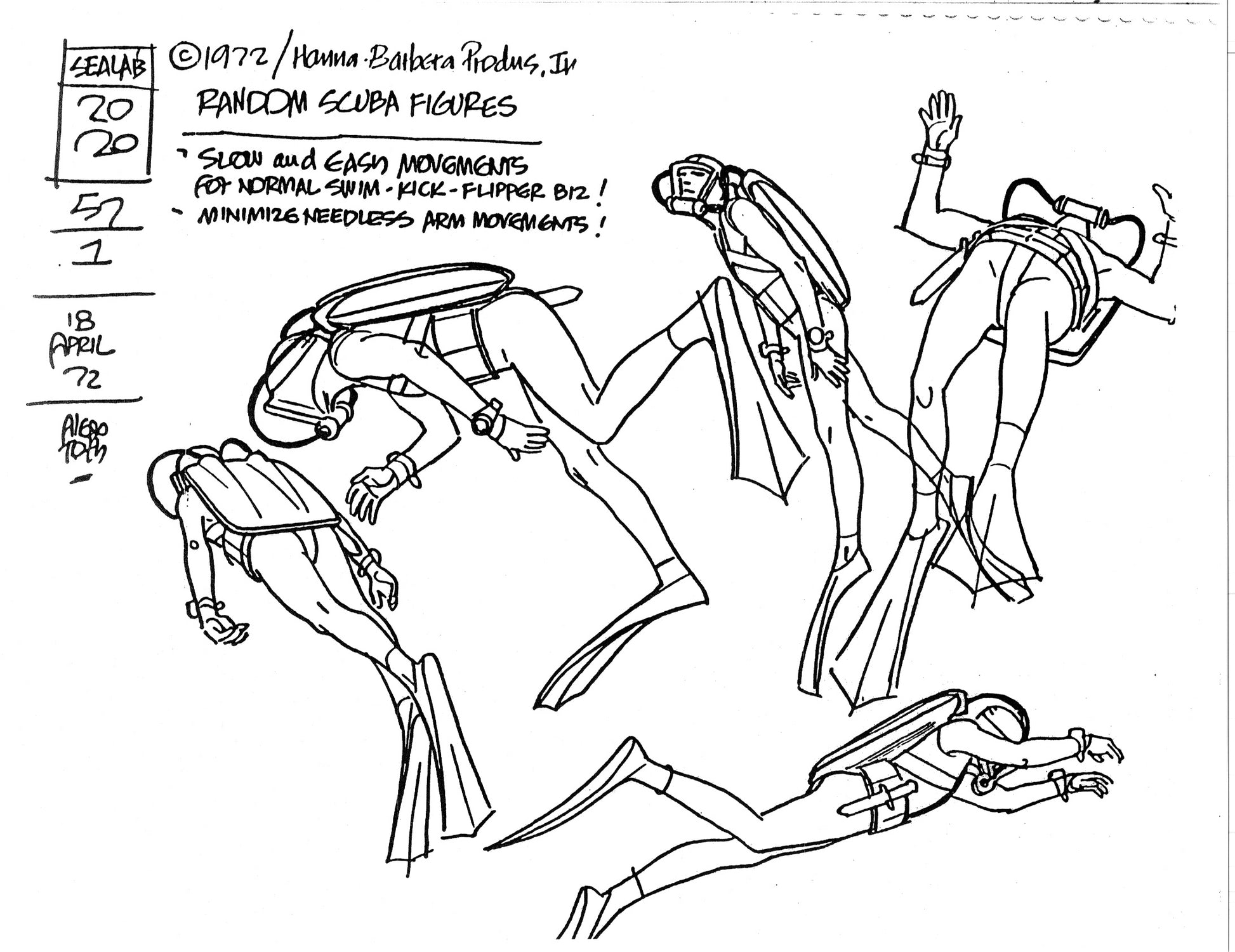 Alex Toth Sealab 2020 Model Sheet Copy Lot of 39 pages of the Cartoon by Hanna Barbera