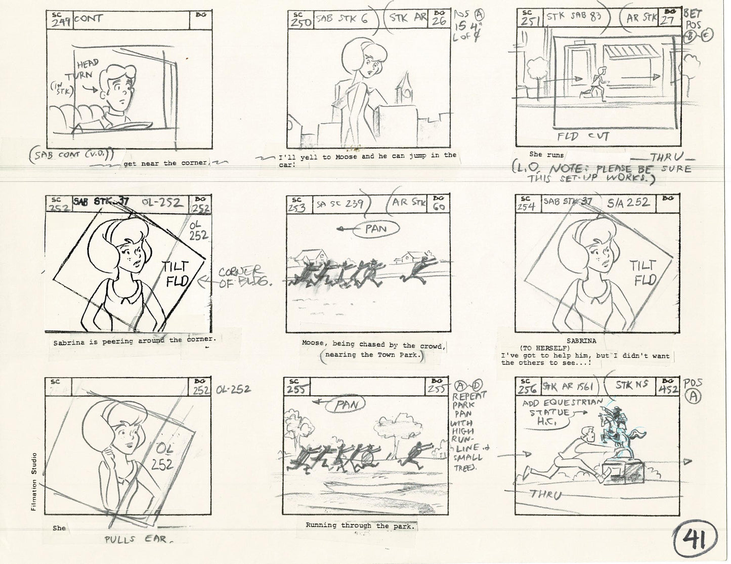 This storyboard art page is over 45 years old and was used to make the cartoon!