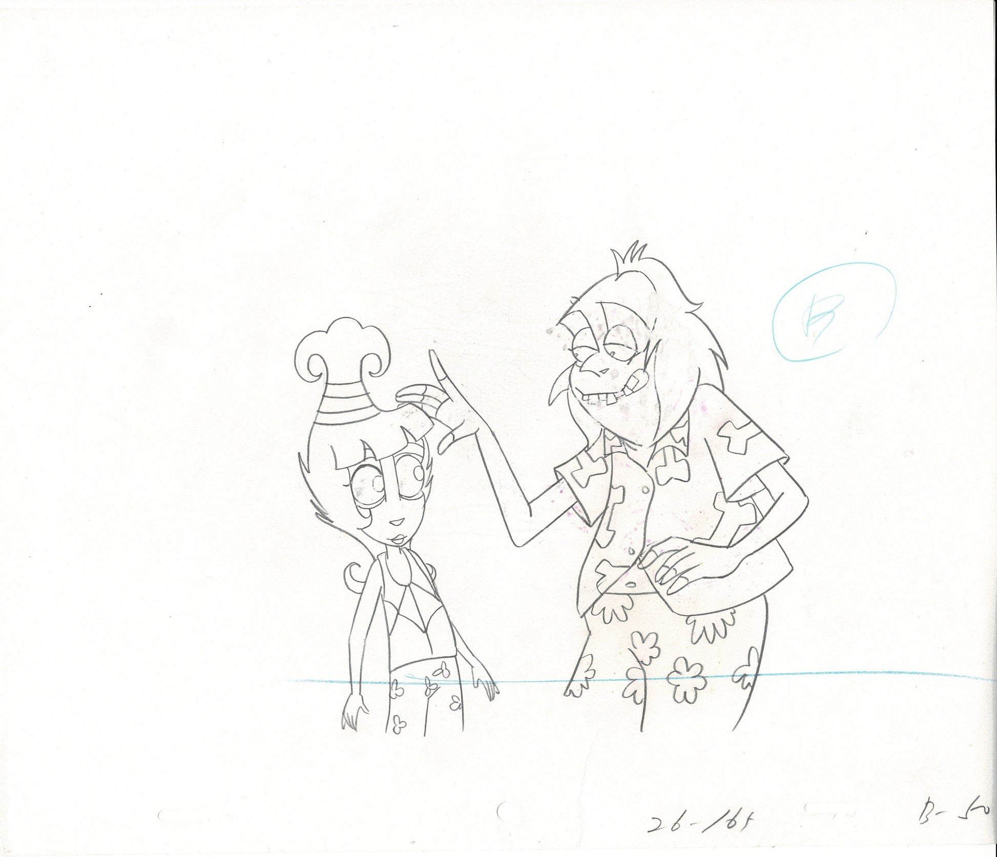 A very nice animation cel drawing of Beetlejuice and Lydia. Measures approx. 10.5" x 12.5"