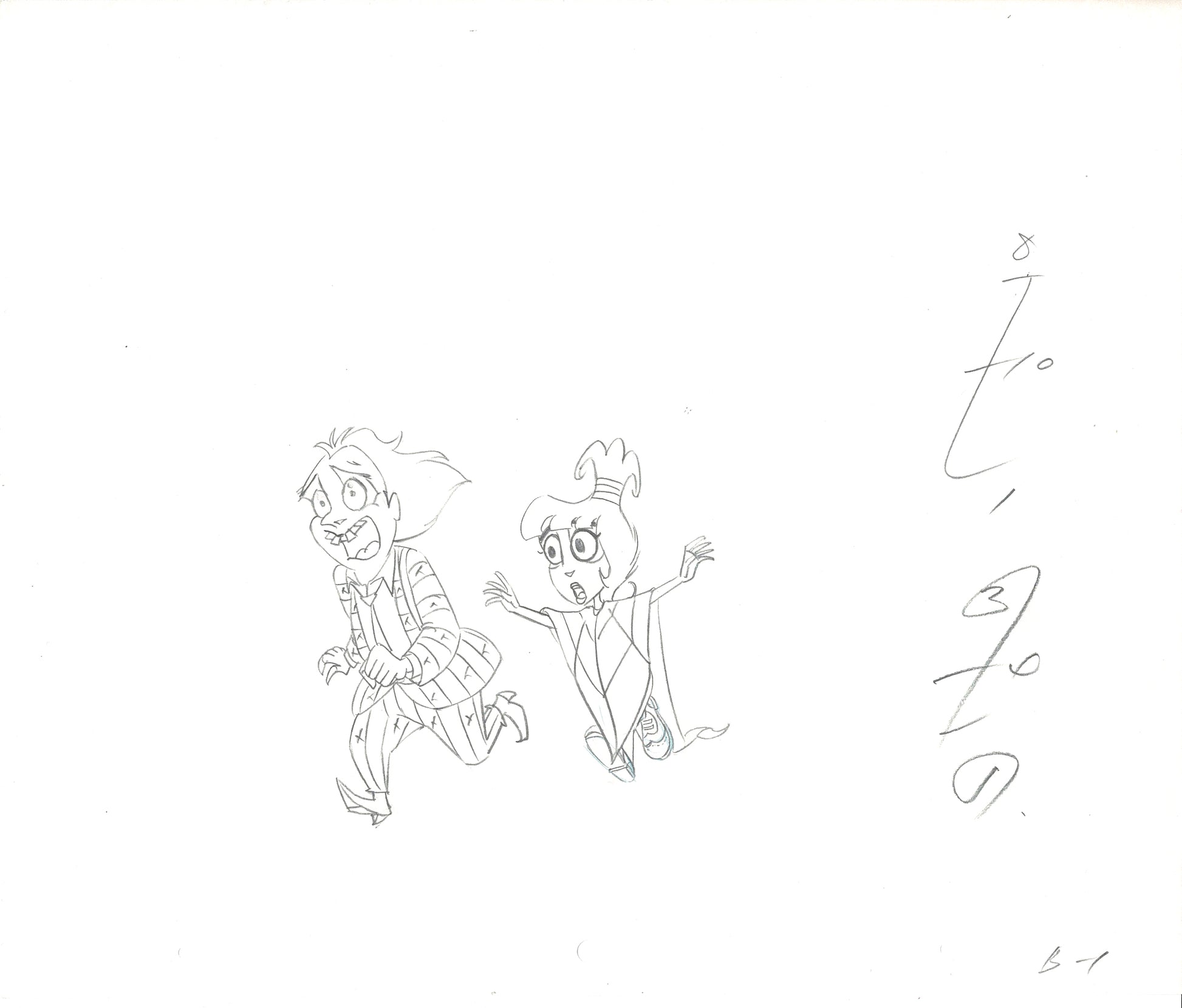 A very nice animation cel drawing of Beetlejuice and Lydia. Measures approx. 10.5" x 12.5"