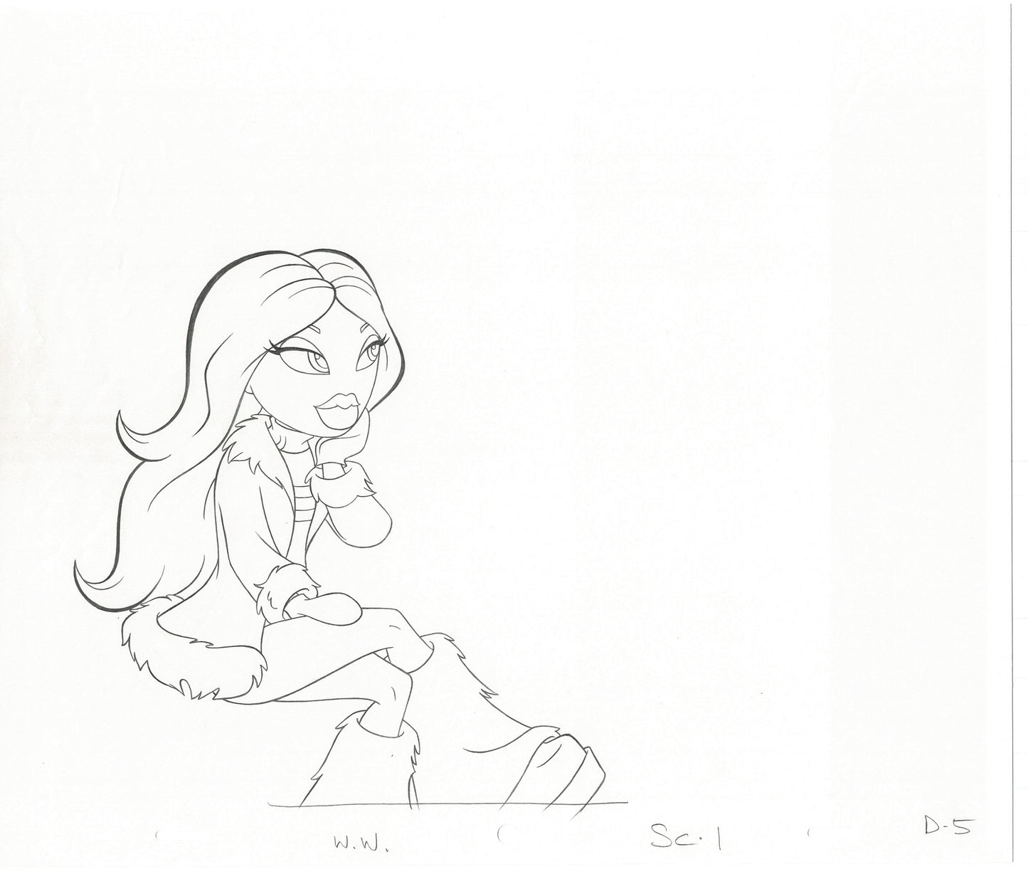 This production drawing is from a classic 2003 commercial for Bratz called "Winter Wonderland." These were wonderful mixed live-action/animated commercials - check it out at the link below -
