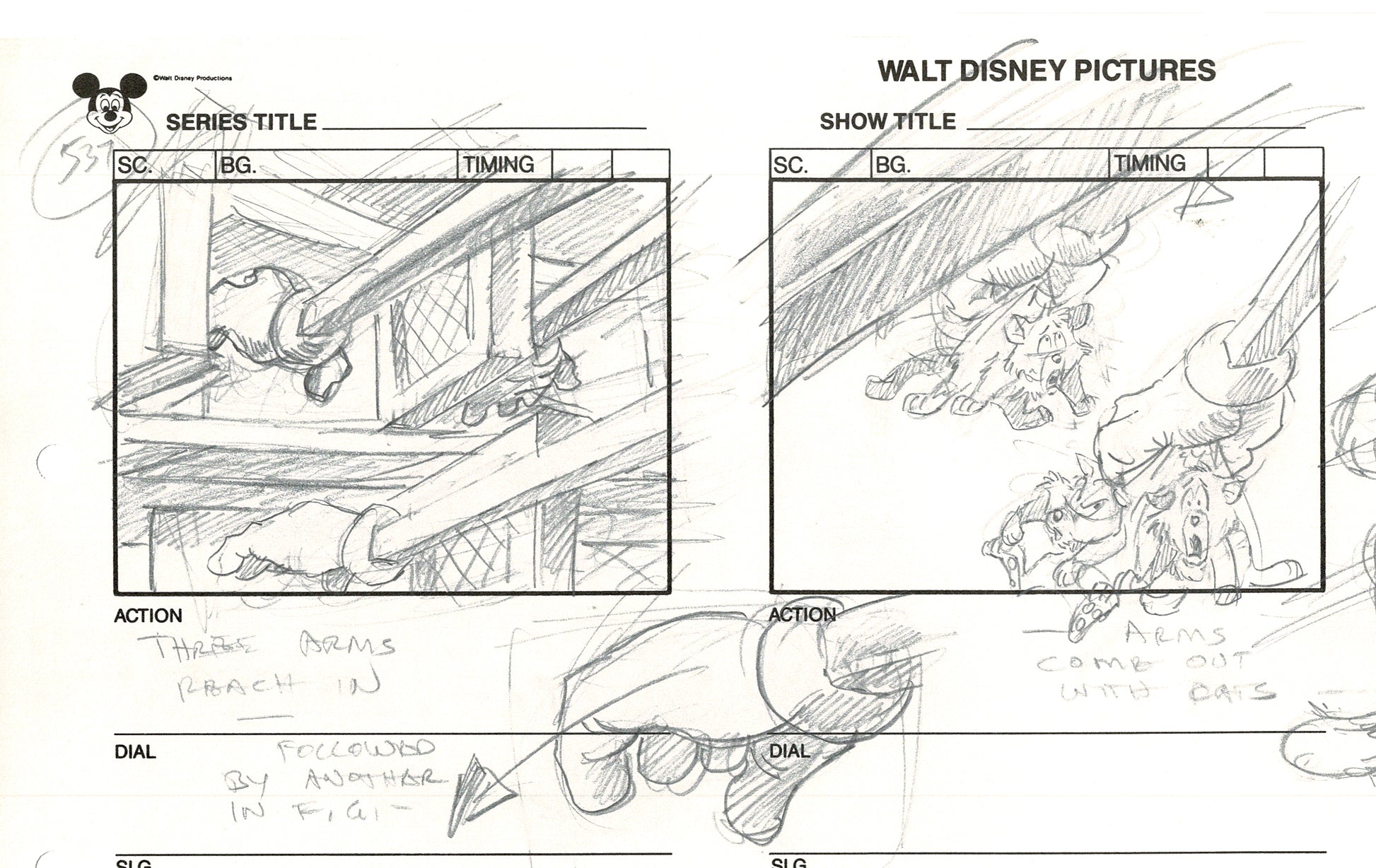 Fast forward to 2025 and the Disney archives joined with a number of other companies to sell items direct via an auction at Sotheby's. We purchased the hand-drawn storyboard set from this episode (of which this page is a part) they sold at this auction. These are EXTREMELY rare! Much more rare than cels or drawings.