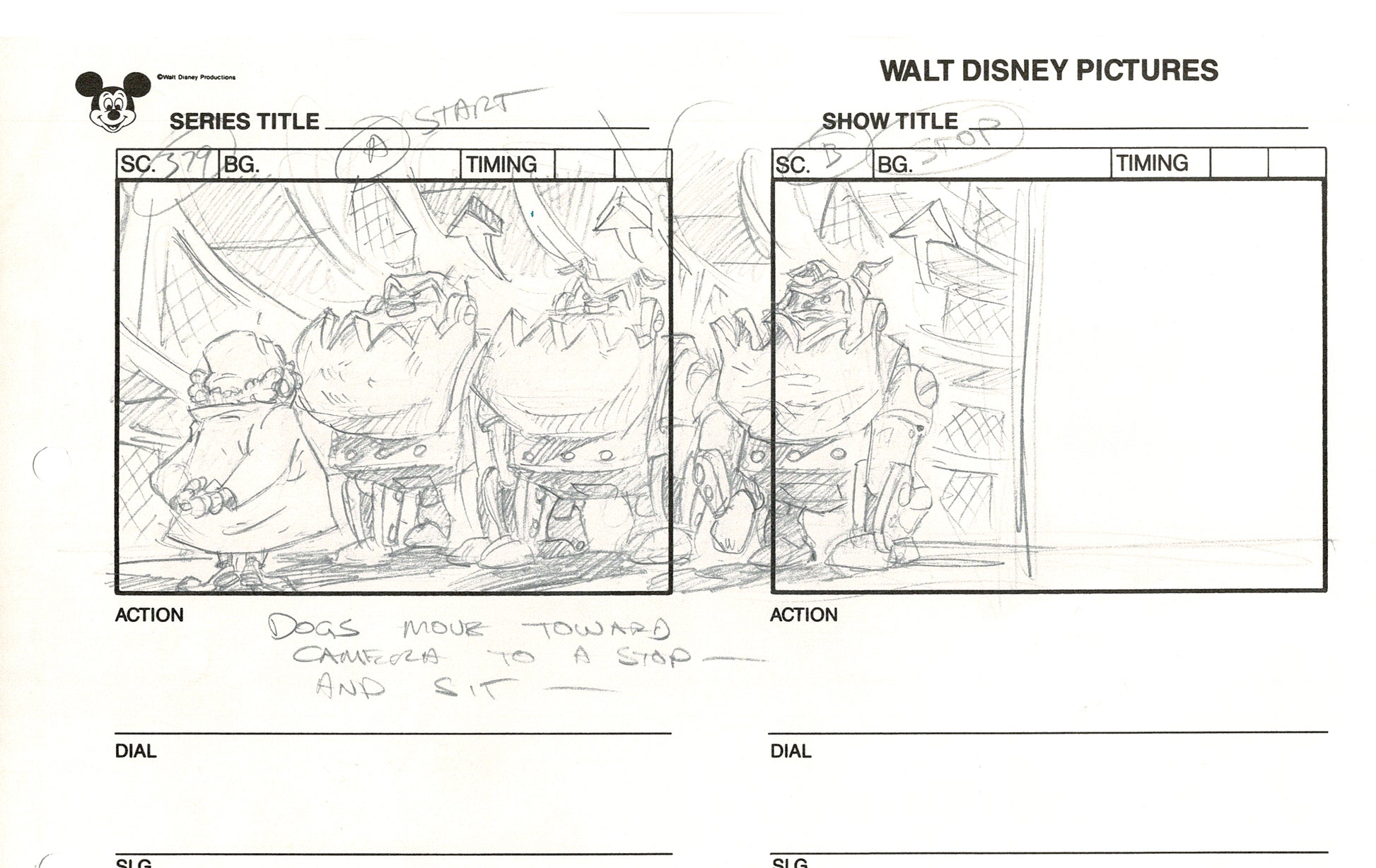 Fast forward to 2025 and the Disney archives joined with a number of other companies to sell items direct via an auction at Sotheby's. We purchased the hand-drawn storyboard set from this episode (of which this page is a part) they sold at this auction. These are EXTREMELY rare! Much more rare than cels or drawings.