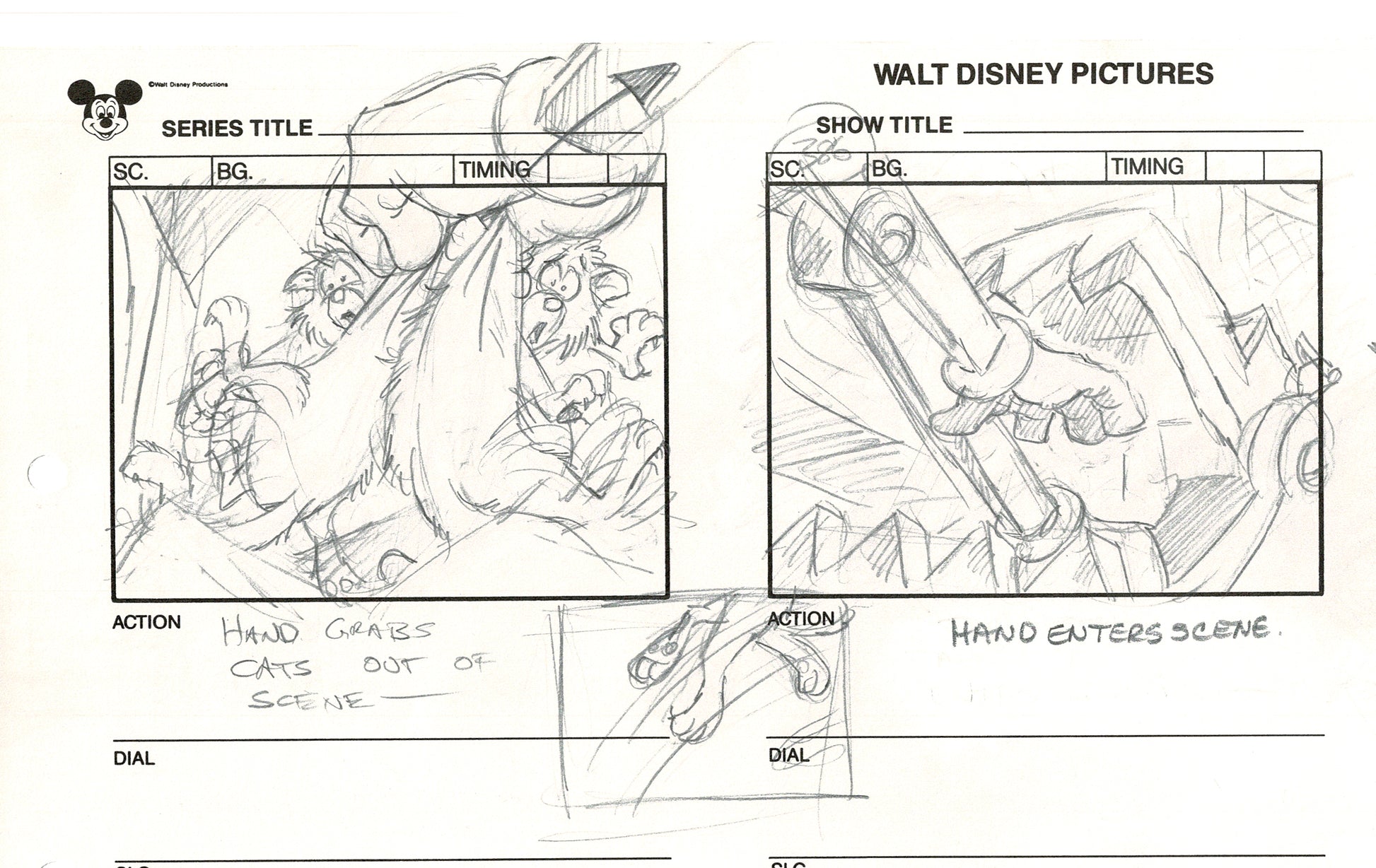 Fast forward to 2025 and the Disney archives joined with a number of other companies to sell items direct via an auction at Sotheby's. We purchased the hand-drawn storyboard set from this episode (of which this page is a part) they sold at this auction. These are EXTREMELY rare! Much more rare than cels or drawings.