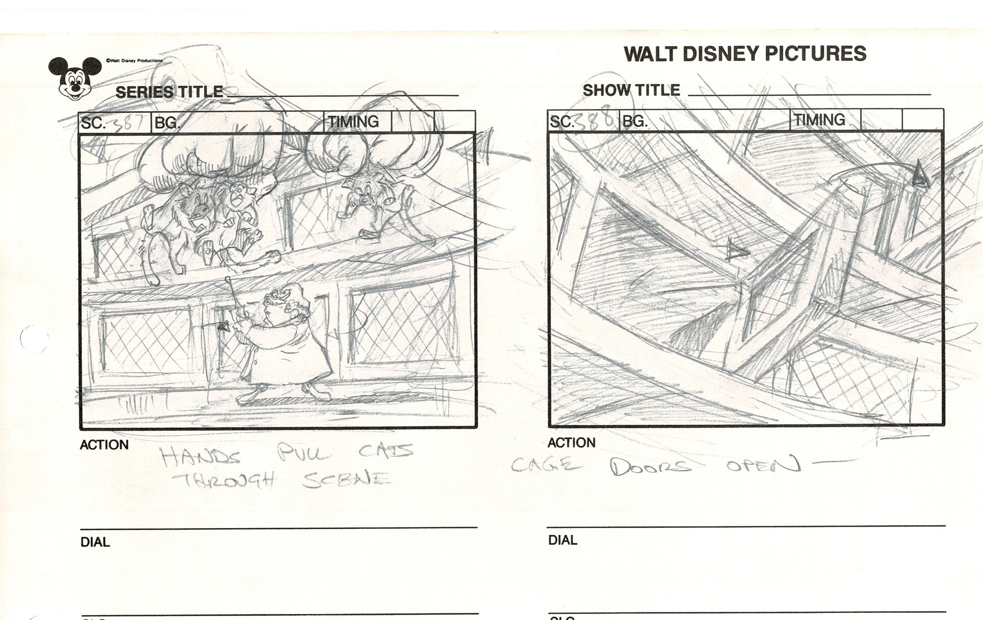 Fast forward to 2025 and the Disney archives joined with a number of other companies to sell items direct via an auction at Sotheby's. We purchased the hand-drawn storyboard set from this episode (of which this page is a part) they sold at this auction. These are EXTREMELY rare! Much more rare than cels or drawings.