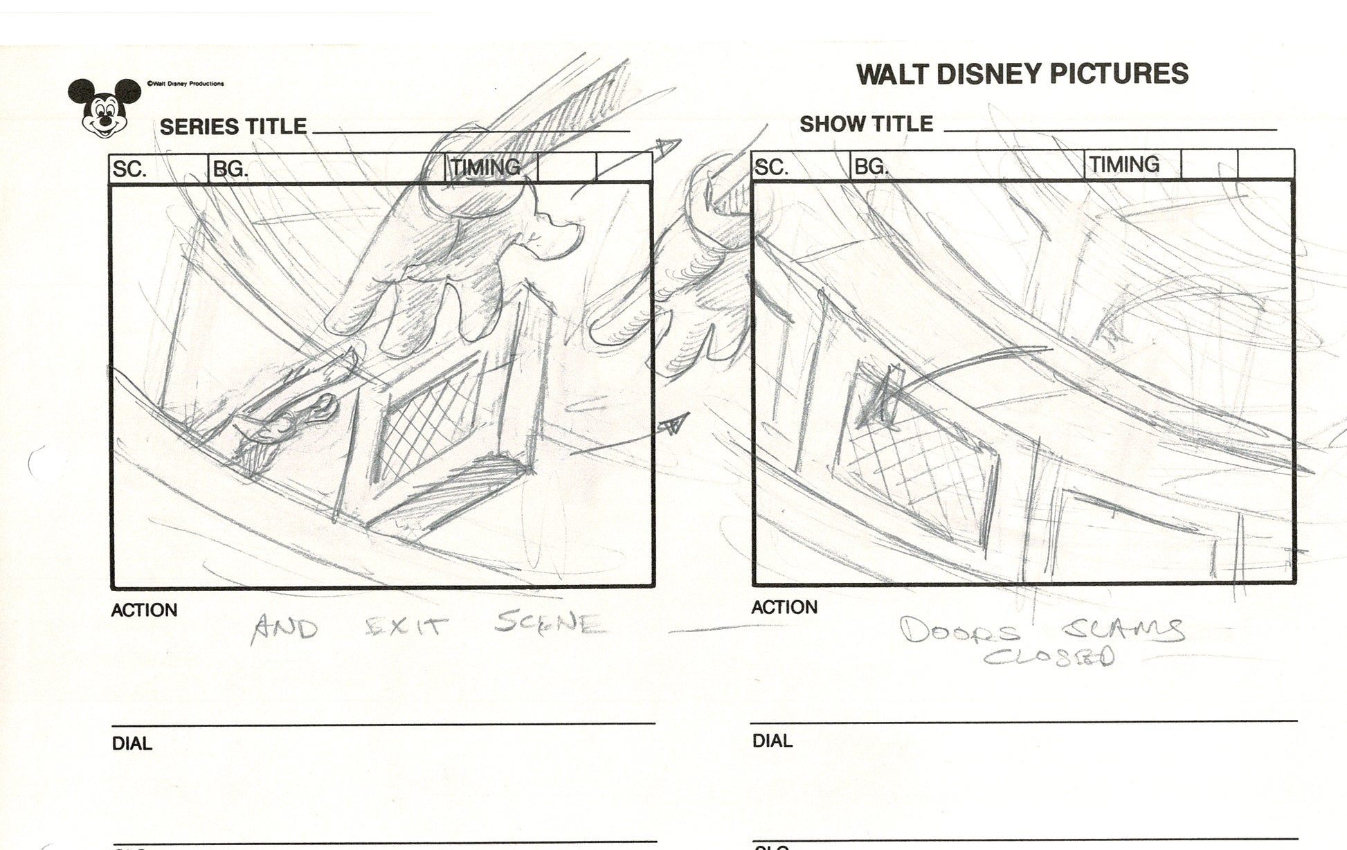 Fast forward to 2025 and the Disney archives joined with a number of other companies to sell items direct via an auction at Sotheby's. We purchased the hand-drawn storyboard set from this episode (of which this page is a part) they sold at this auction. These are EXTREMELY rare! Much more rare than cels or drawings.