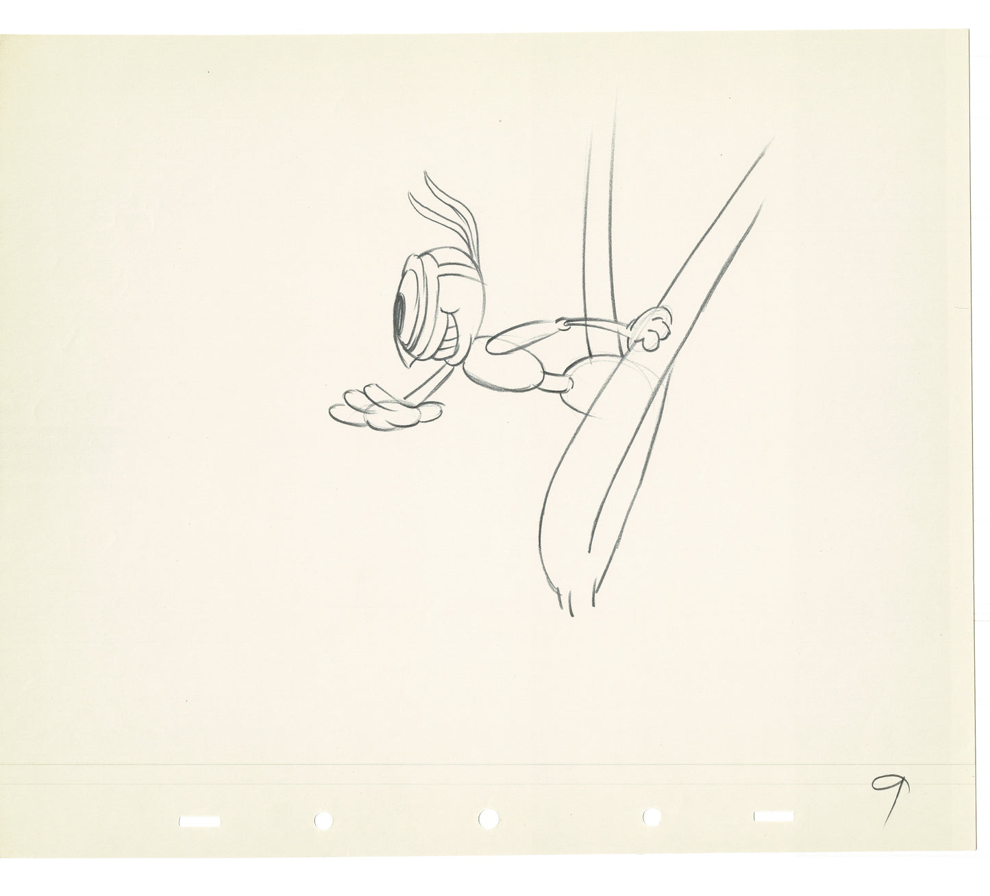 From the 1939 Walt Disney short with Pluto and Donald Duck entitled, "Beach Picnic." Half way through a tribe of "indian" ants spot their picnic and go for it! This is the leader and his first moments of spying out the feast (we've included a screen shot from the scene). The short was directed by Clyde Geronimi and the writers were Carl Barks and Jack Hannah! Shamus Culhane was one of the animators. View the full short on you-tube. The paper is a warm, slightly-aged yellow, has some production wear and measures approx. 10" x 12".