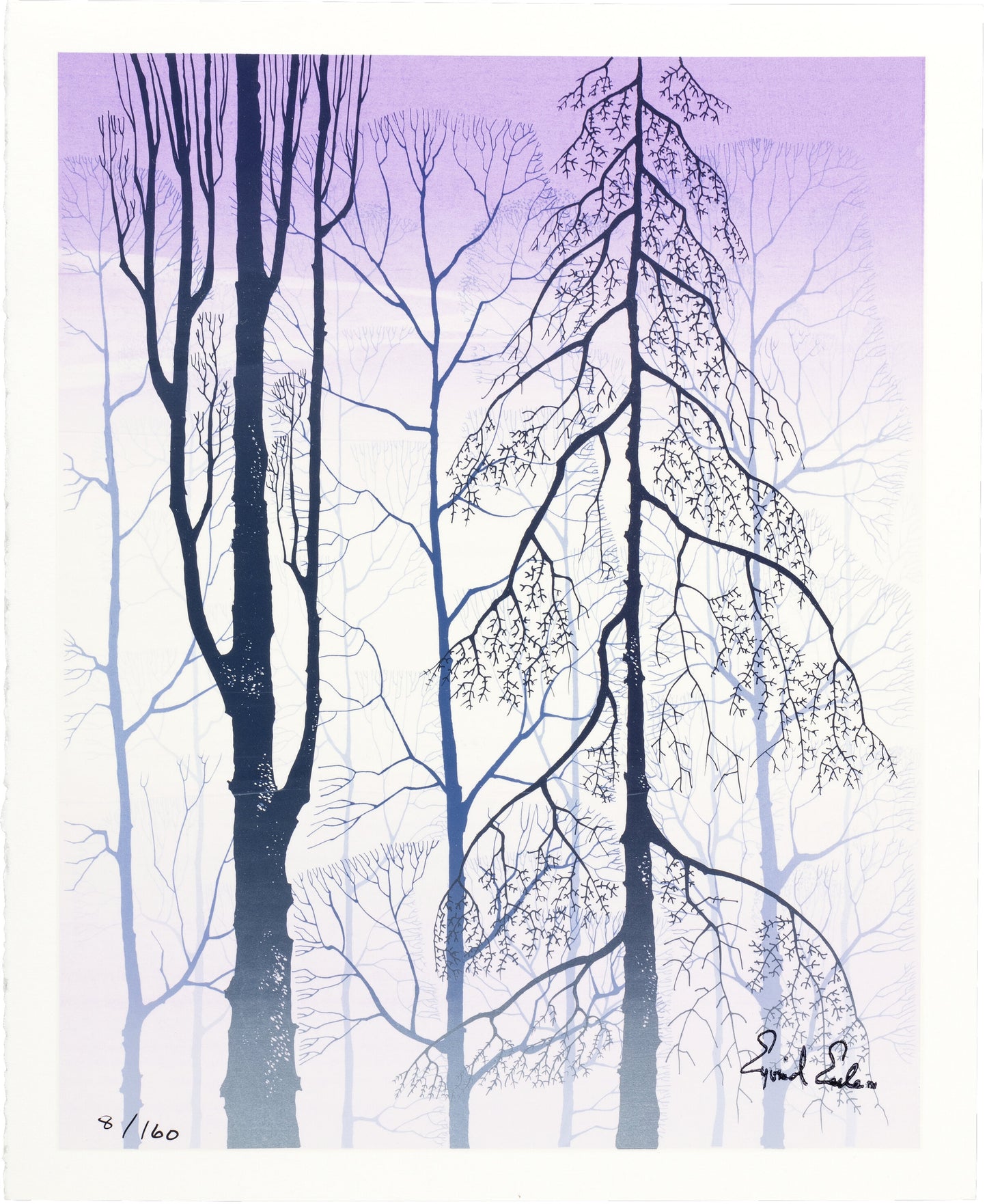 This is an exceedingly rare limited edition Christmas card serigraph entitled "Winter Woods." Sent by his estate during the holiday season, six months after his passing. Dedicated in his loving memory by his widow Joan, this vibrant serigraph card features artwork which was previously offered as a limited edition print in 1998.