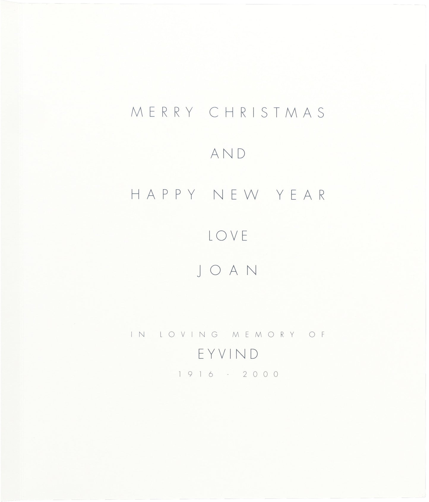 Measures approximately 9.25" x 11.25". Has the edition number of 8/160 in the lower left as well as a stamped estate signature in the lower right. The front features gloss over the printed image area for a beautiful display, and the interior includes a simple and heartfelt printed greeting. The lot also includes the original mailing envelope post marked Dec 8, 2000.