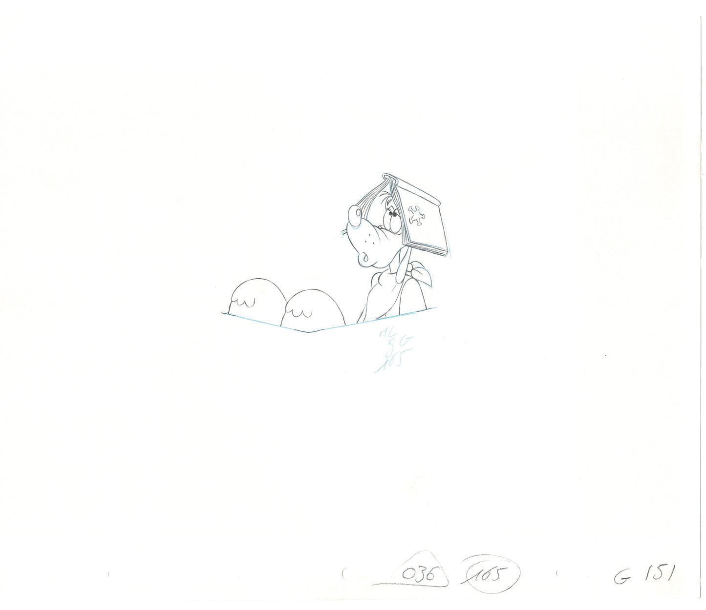 Goof Troop was about Goofy as a single father to Max. It ran from 1992-1993, and had an Xmas Special and two follow-up films! This is from Episode 65, "Gunfight at the Okie-Dokie Corral Episode, where cowboy Goofy is in a trough with a book (around the 13:47 mark). The drawing measures approximately 10 5/8" x 12 5/8"