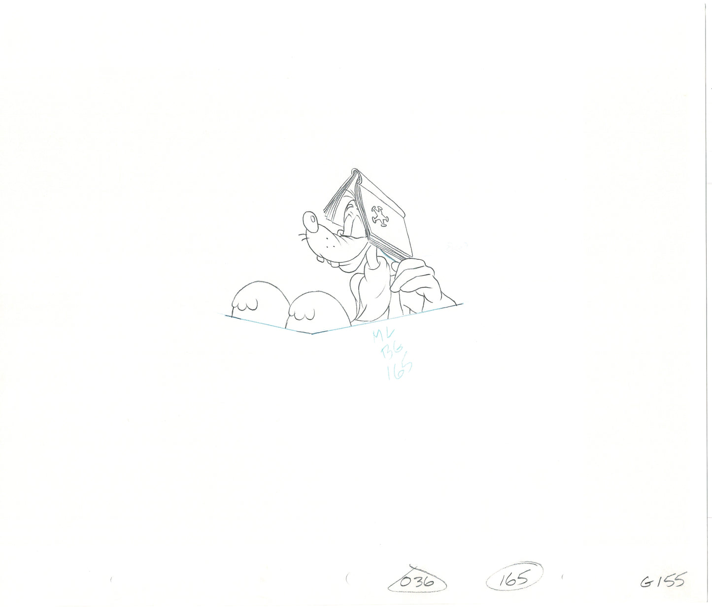 Goof Troop was about Goofy as a single father to Max. It ran from 1992-1993, and had an Xmas Special and two follow-up films! This is from Episode 65, "Gunfight at the Okie-Dokie Corral Episode, where cowboy Goofy is in a trough with a book (around the 13:47 mark). The drawing measures approximately 10 5/8" x 12 5/8"