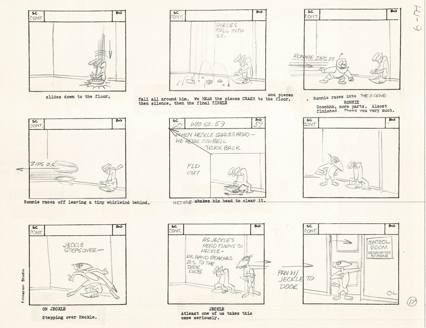 Heckle and Jeckle Storyboard Art Cartoon 2 Pages Vintage Filmation 1979 A-017n18