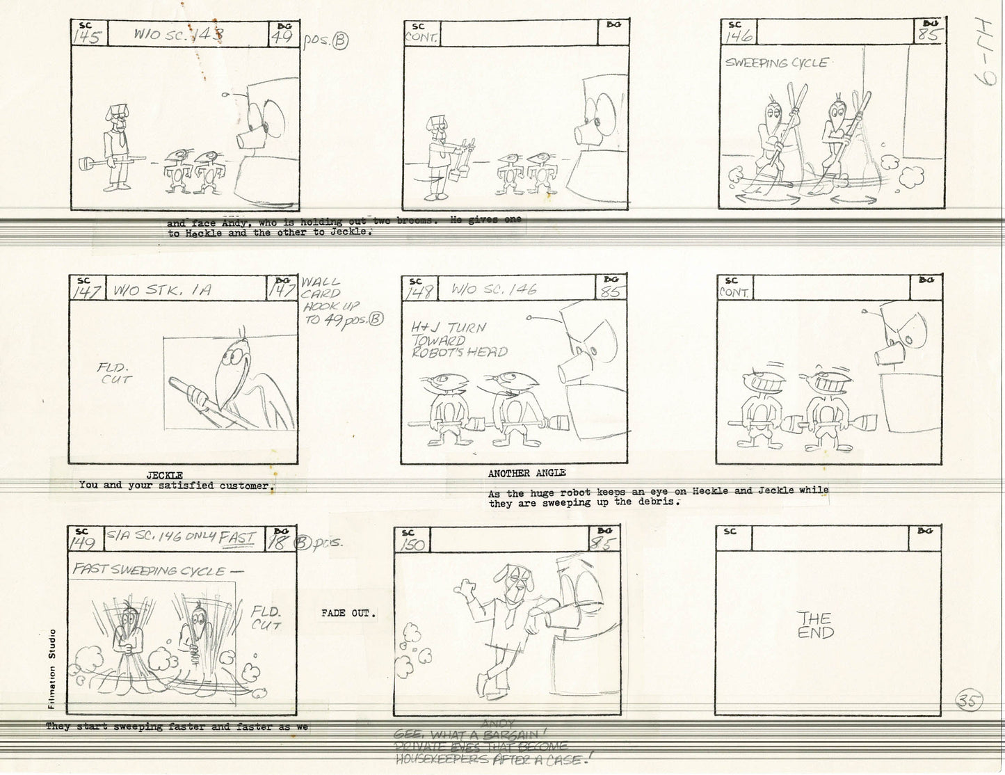 Heckle and Jeckle Storyboard Art Cartoon Page Vintage Filmation 1979 A-035