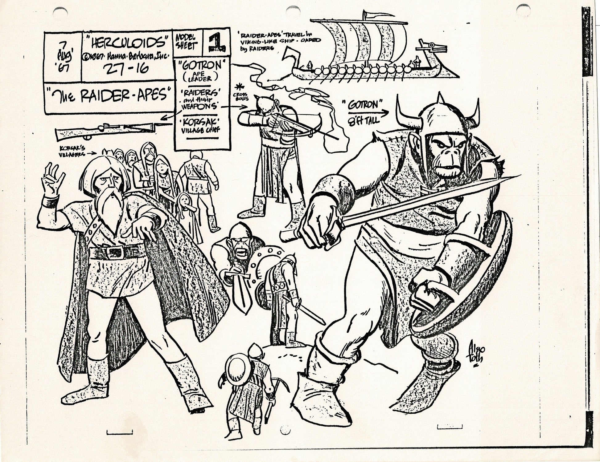Herculoids 1967 Alex Toth Production Model Sheet Copy Lot of 16 Pages from Hanna Barbera