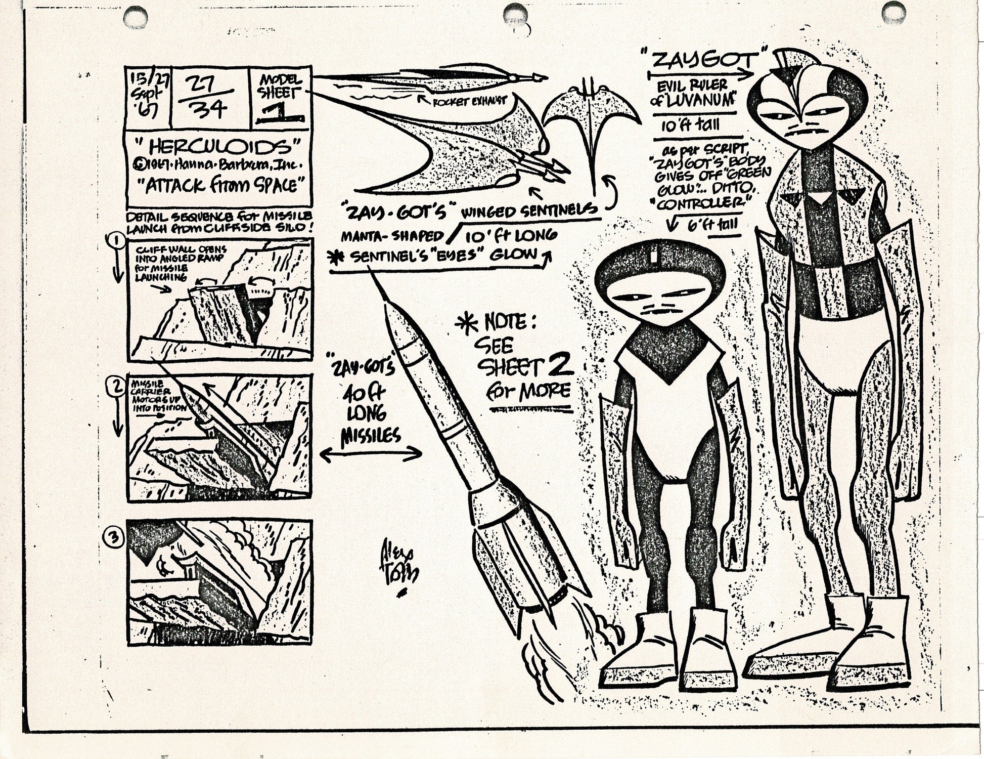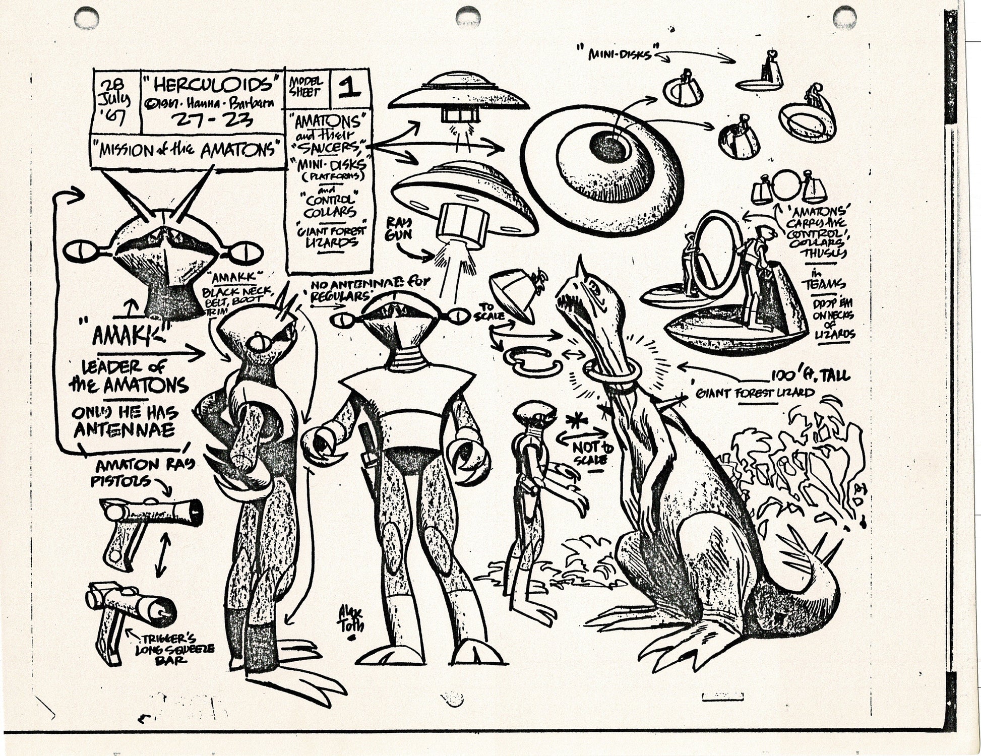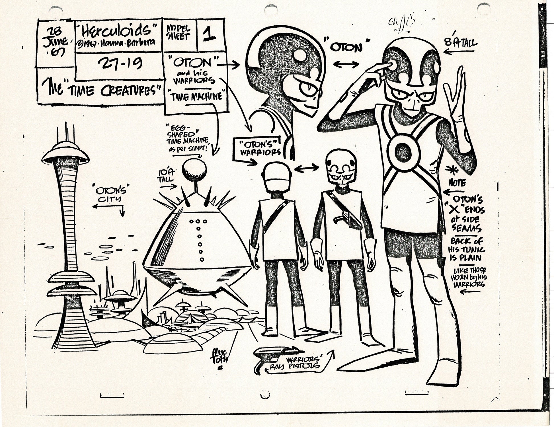 Alex Toth is of course a legend and his output for Hanna Barbera in the early days is just incredible. Model sheets were handed out to animators to make sure that the characters/props/settings were consistent when multiple animators drew them for the show.