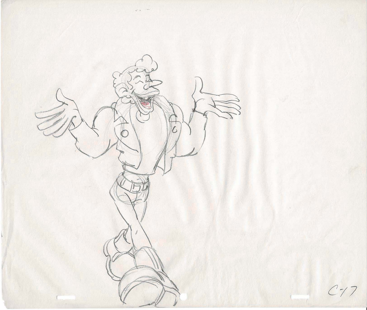 HEY GOOD LOOKIN is a classic film with an interesting and unusual path (1974-1982 IS the production period believe it or not). A huge cult hit. Most of the cels and drawings from Hey Good Lookin have some amount of waviness to them, as this one does. Though the picture we have up greatly exaggerates what the waviness looks like in person. Measures approx. 10.5" x 12.5". Some production wear. We'll include a Charles Scott Gallery COA.