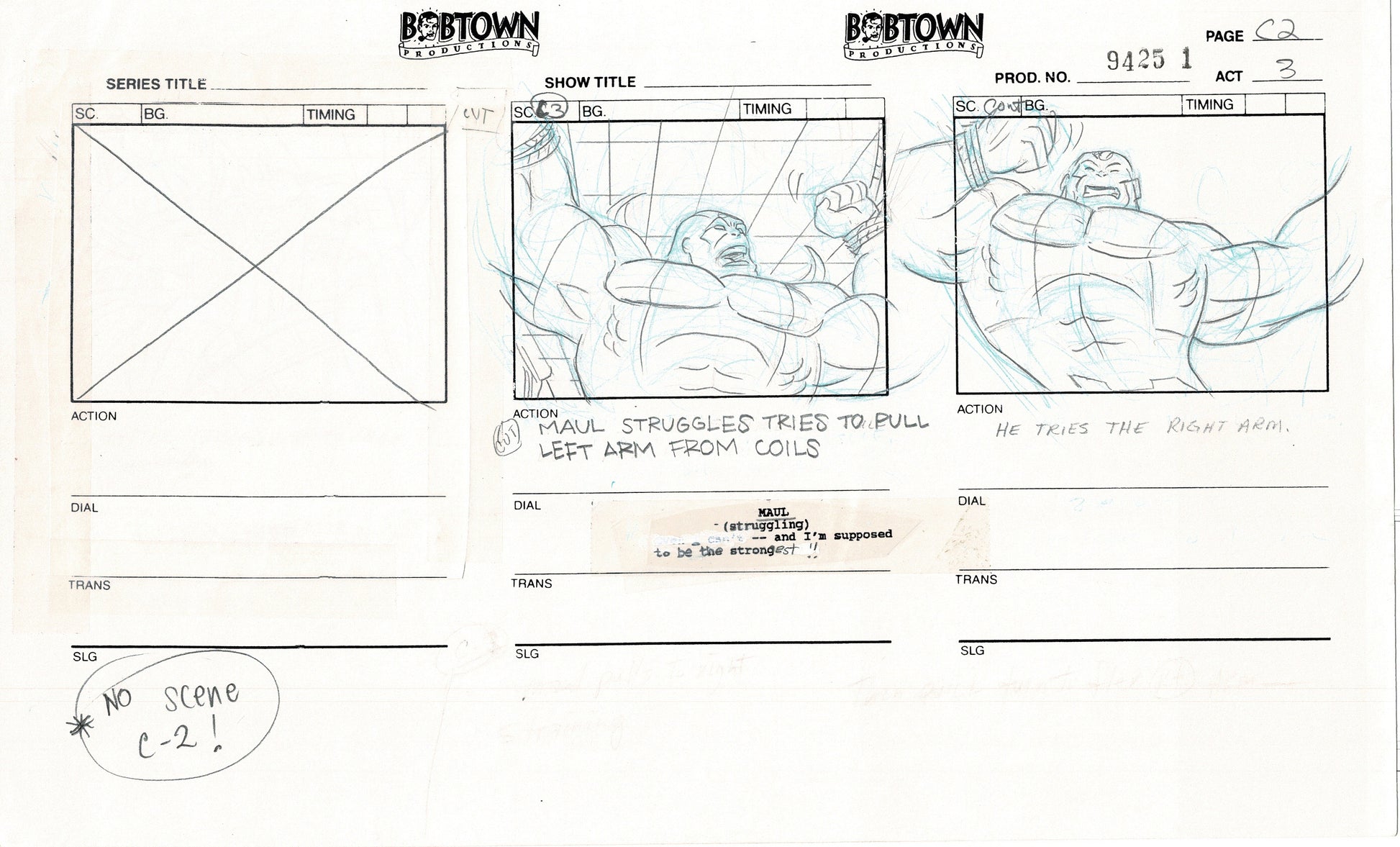 LOT OF 3 Original Production Animation Storyboards
