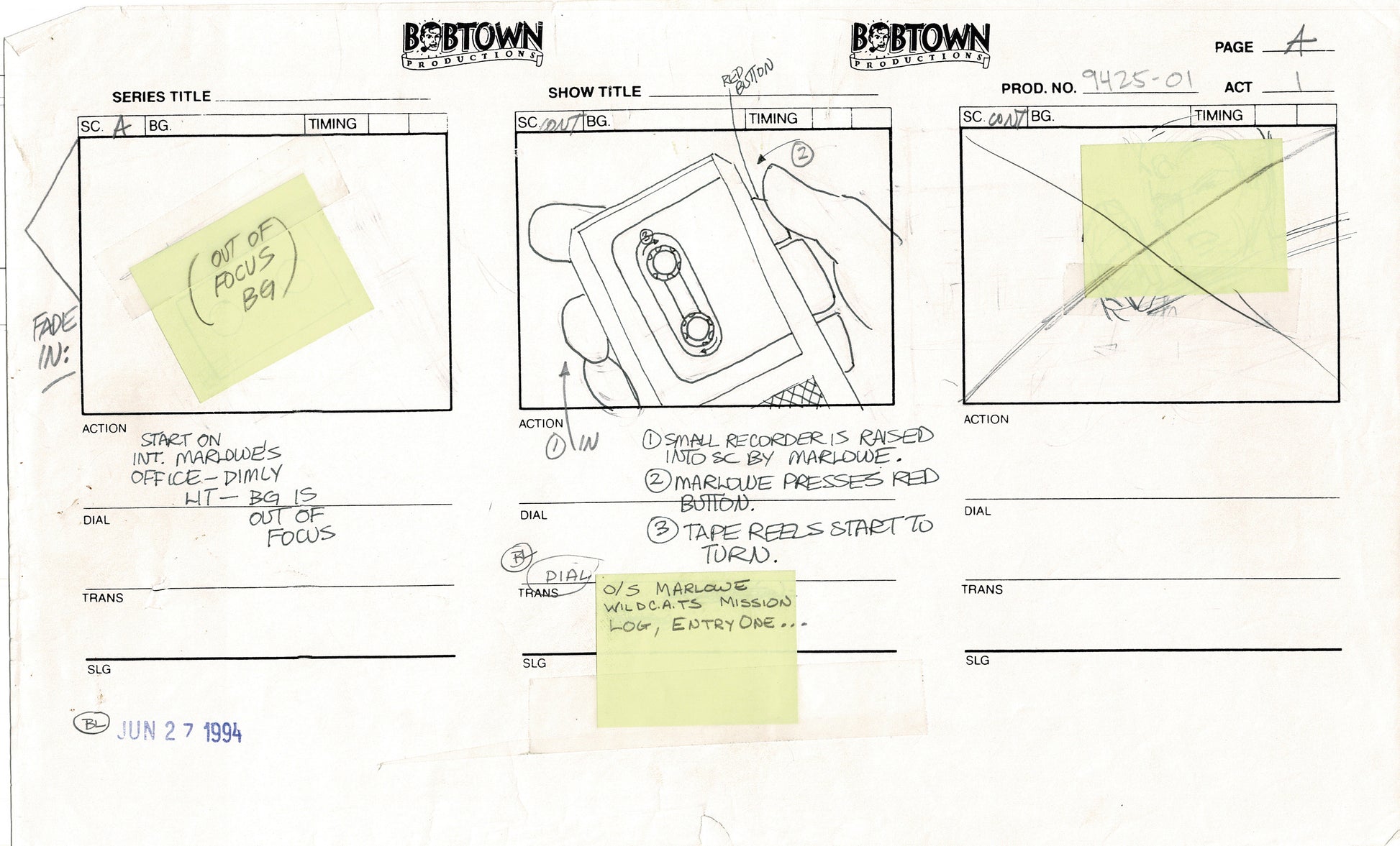 From the 1994/5 Nelvana adaptation of Jim Lee's WildC.A.T.S. comic. These hand-drawn storyboards are the actual, one of a kind, final storyboards for the episode you watched in 1994!