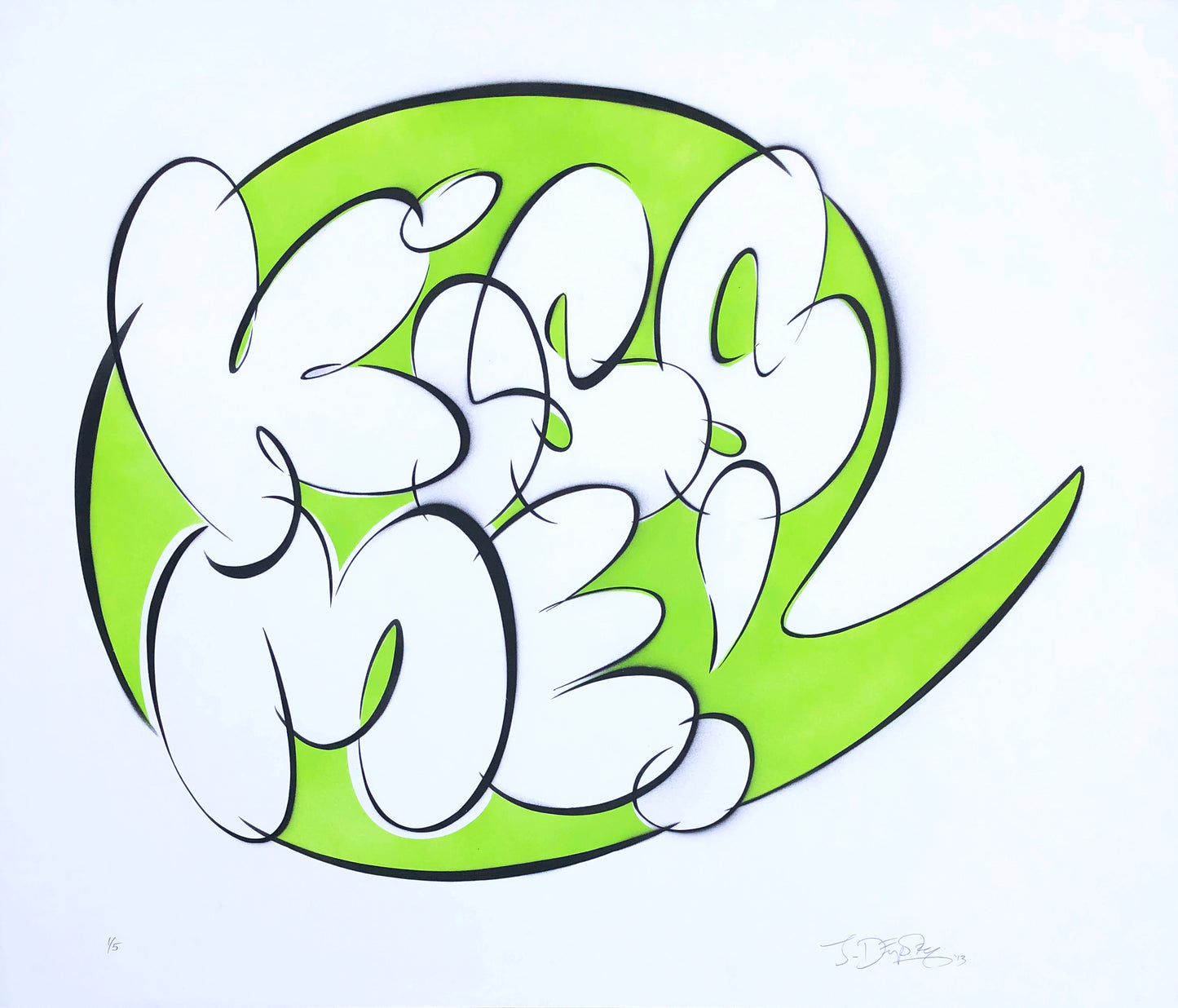 "KISS ME IN Green" Original Spraypaint with Stencils on Board #1/5