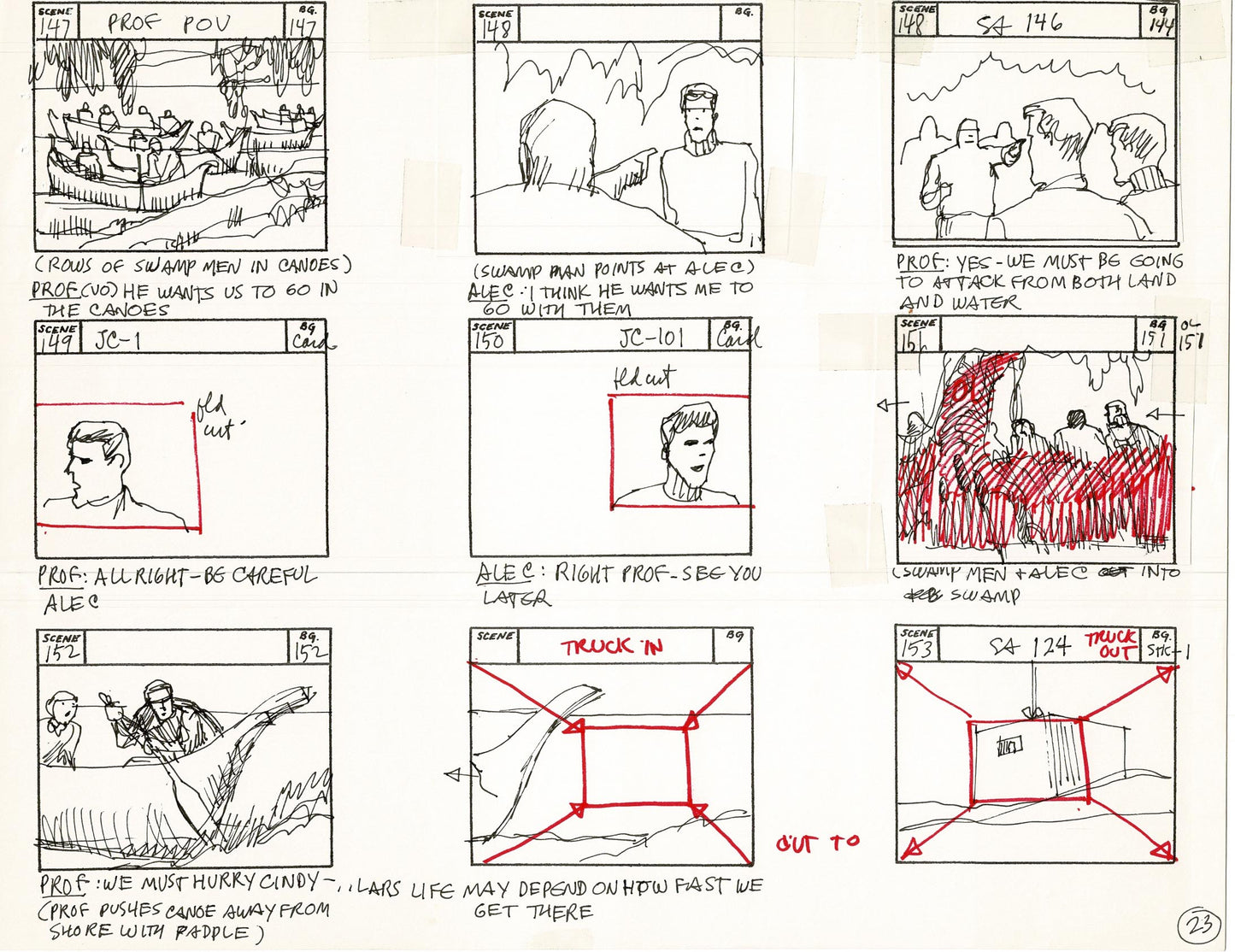 There's dialogue, action notes and scene numbers - it's a wonderful summary of these wonderful old cartoons! These are generally a mix of graphite pencil drawing/dialogue, ink and some COPIED panels (which are also sometimes hand-drawn over). Also - frequently the panels are drawn and then cut out and taped down in a new order. See picture and feel free to ask about individual panels.