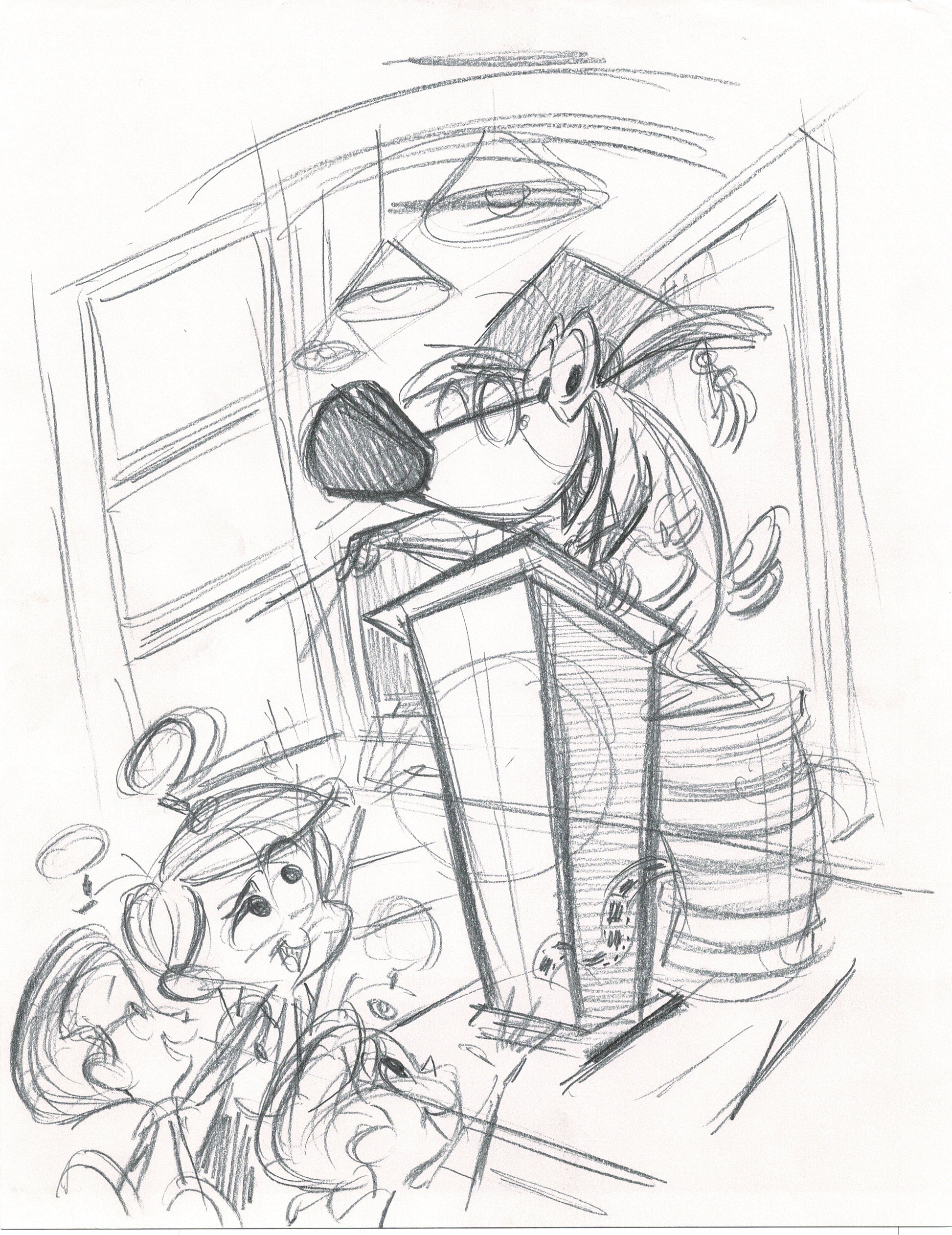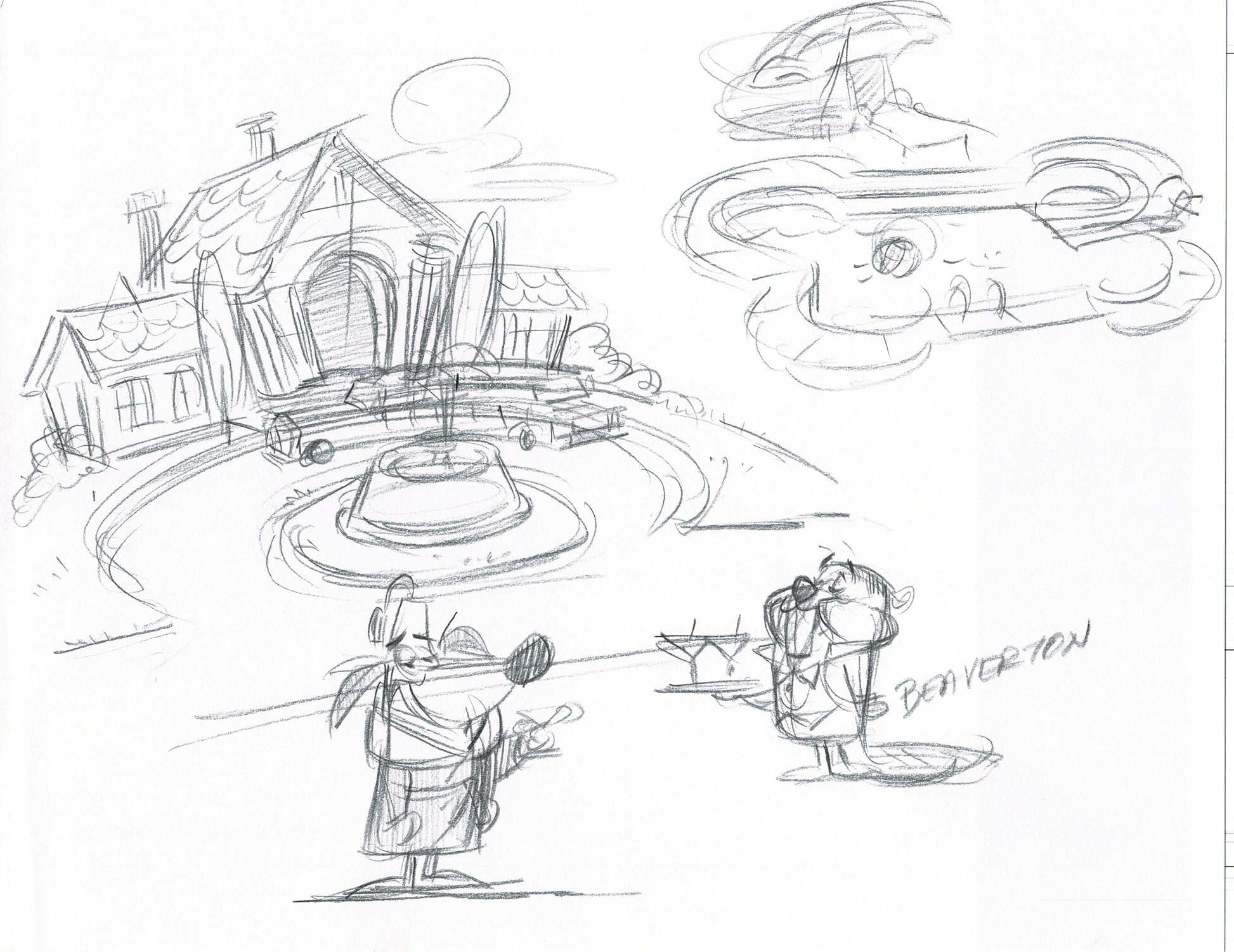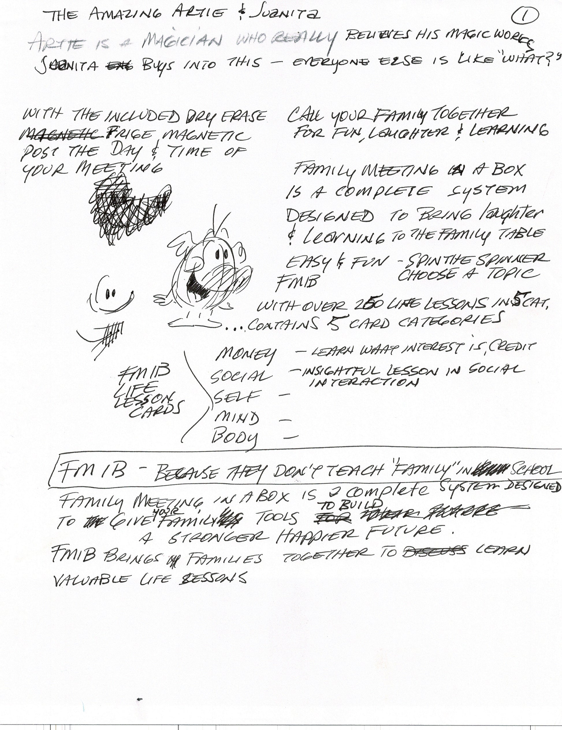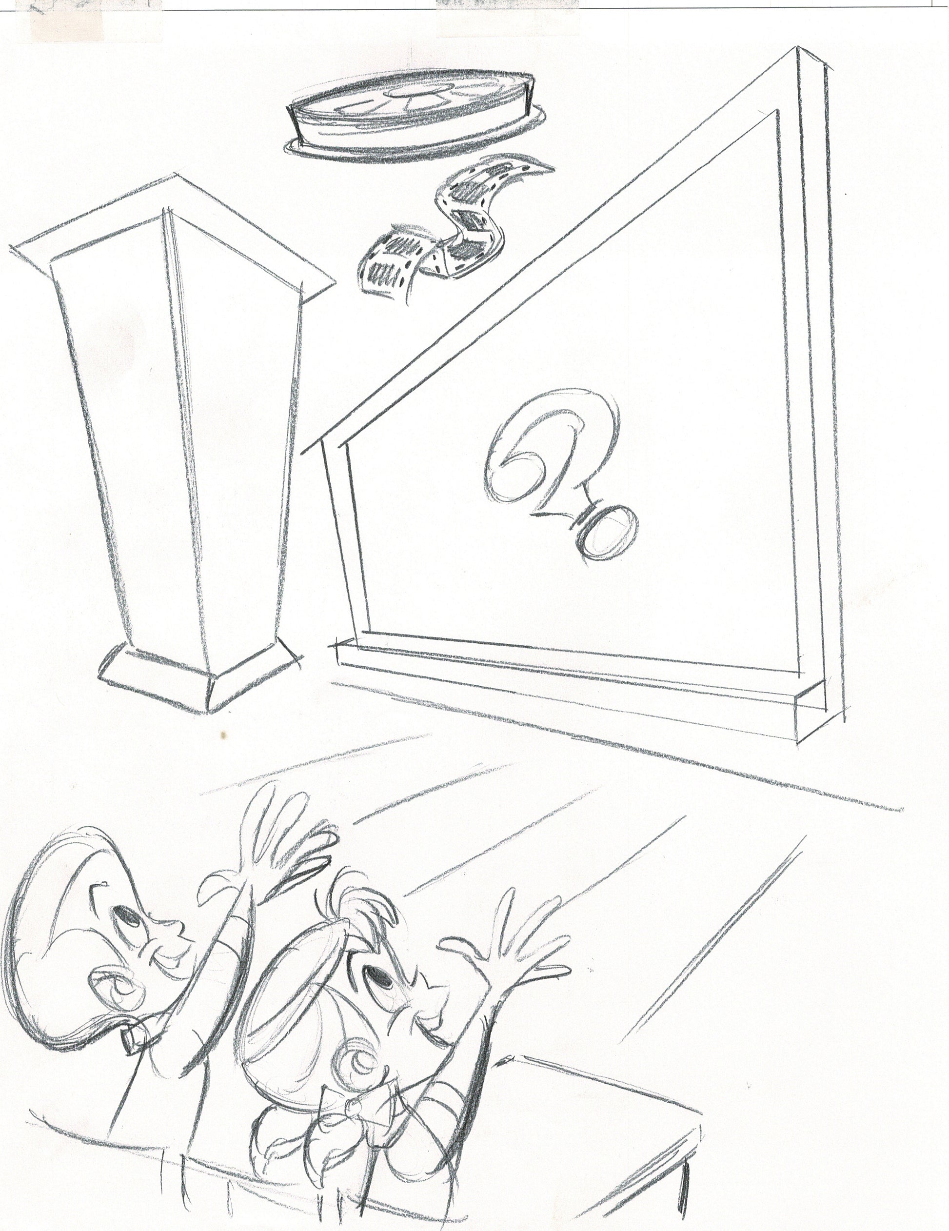 Len Smith has worked on an amazing array of cartoons including The Little Mermaid and Talespin to just name a few. Here's a WHOLE STACK of hand-drawn art in graphite on 8.5" x 11" paper - 62 pages to be exact, by this famous animator. It appears to be the preliminary work for a show he was calling "The Amazing Artie and Juanita."
