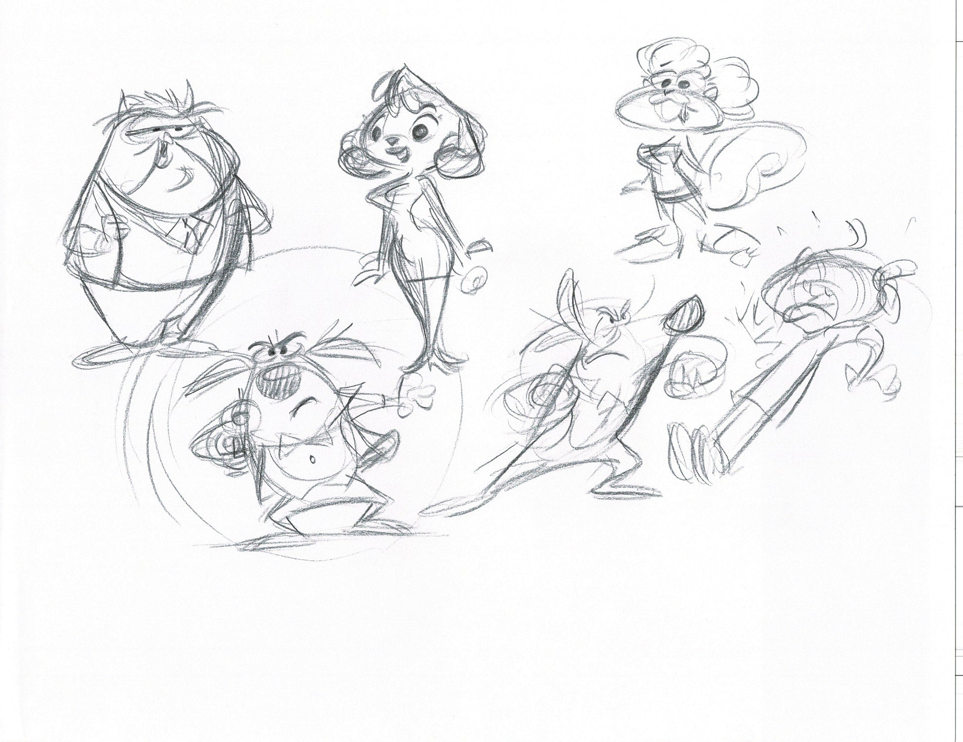 Len Smith 62-page lot Cartoon Production Character Drawings for Proposed Show