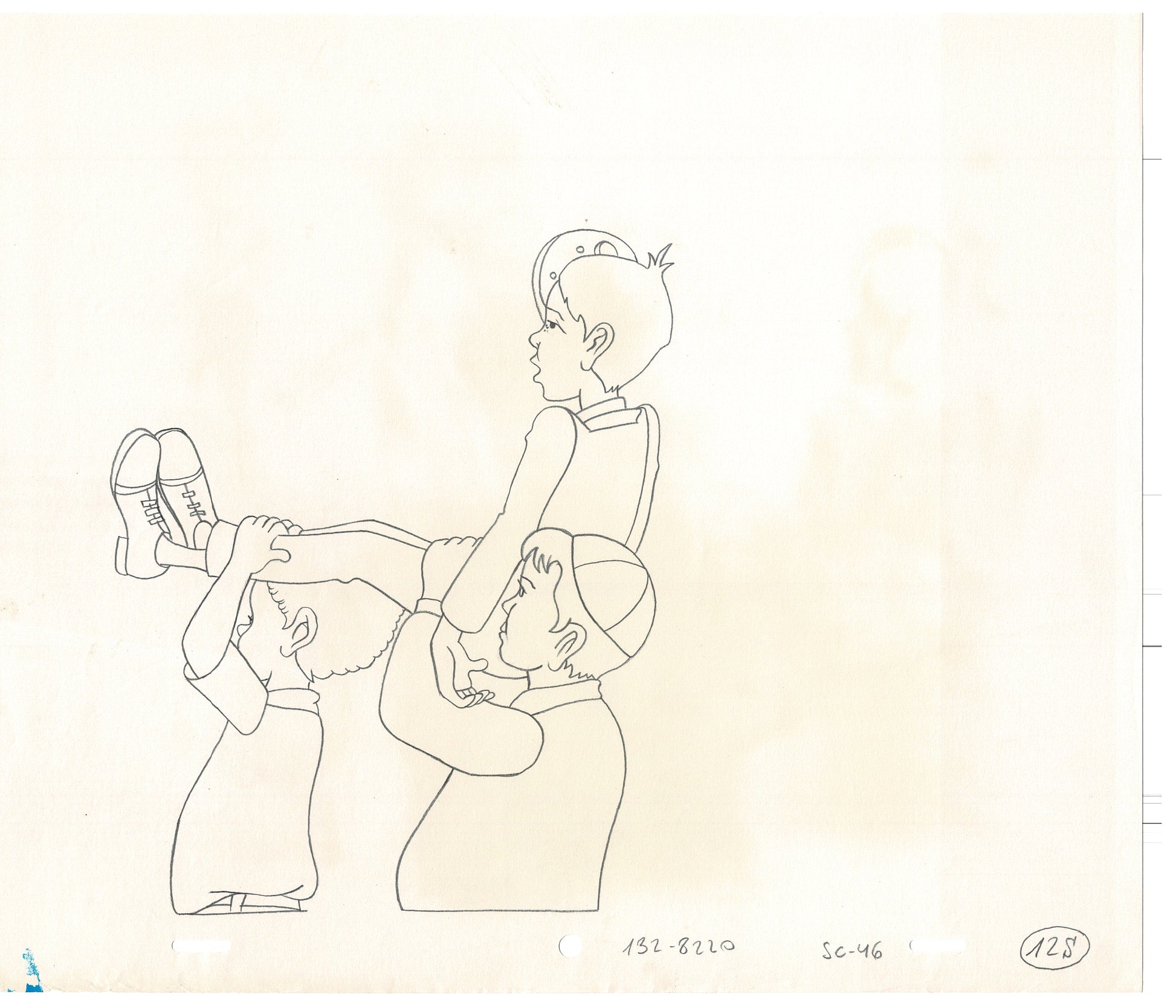 Based on the Classic Our Gang comedies, this cartoon had all the old characters, like Alfalfa and Spanky. This production drawing was actually used to make the show! It has some discoloration due to being up against the cel at some point. Each measures approx. 10.5" x 12.5".