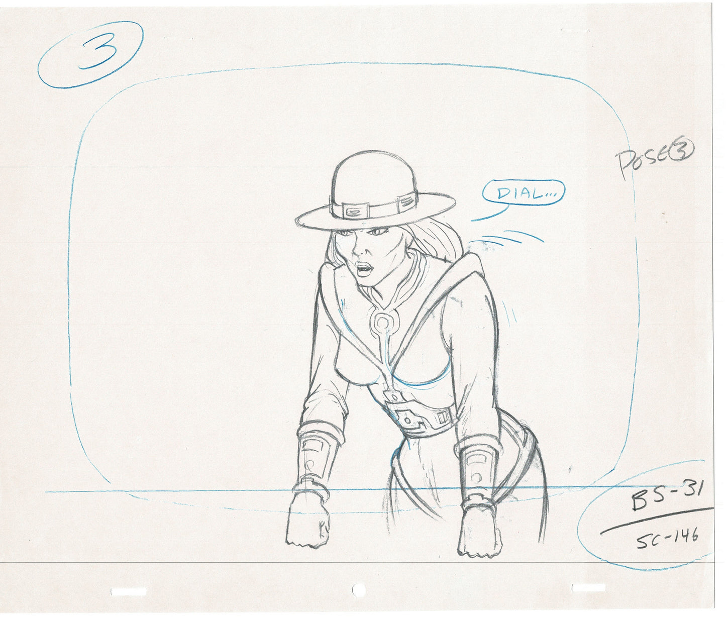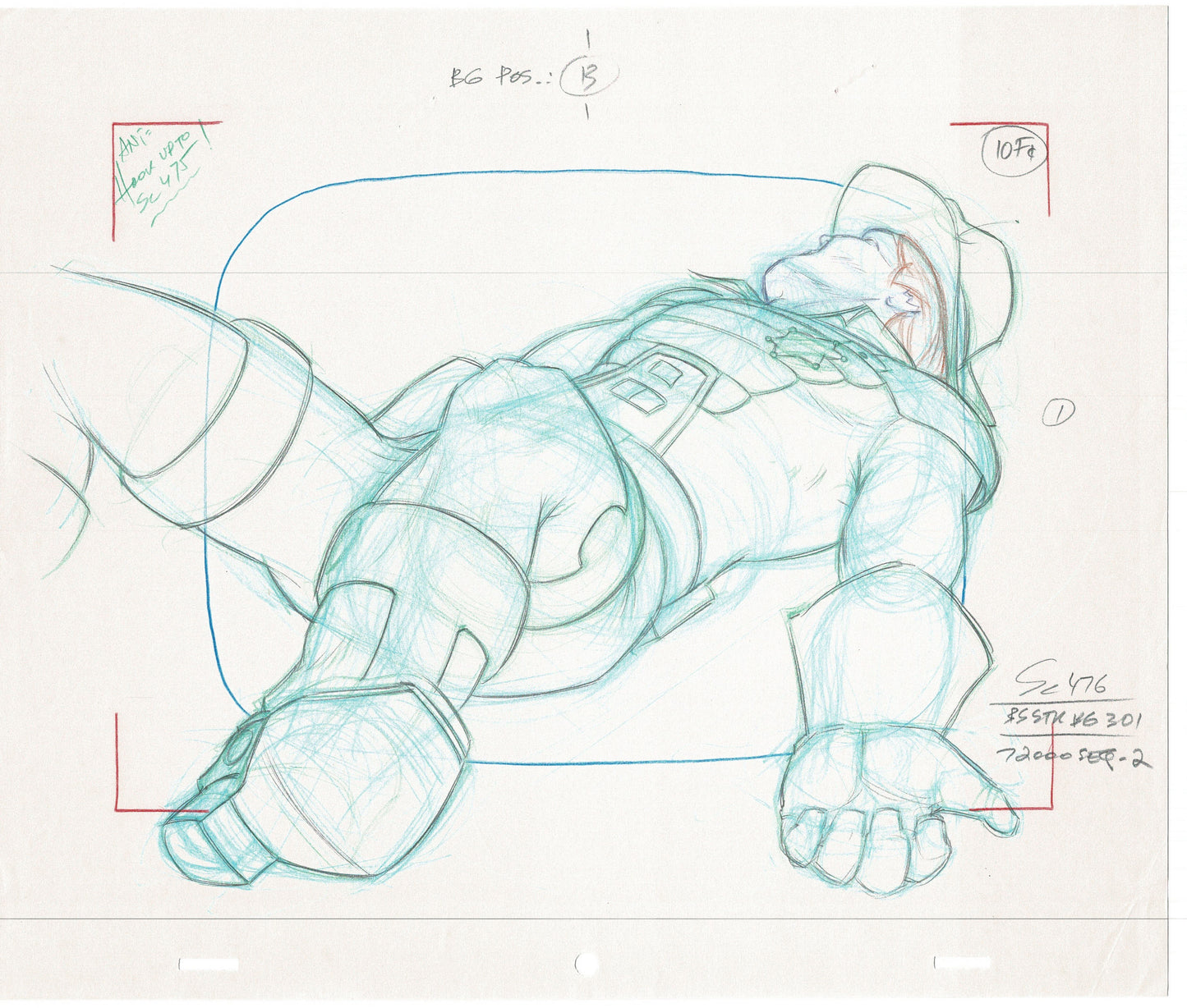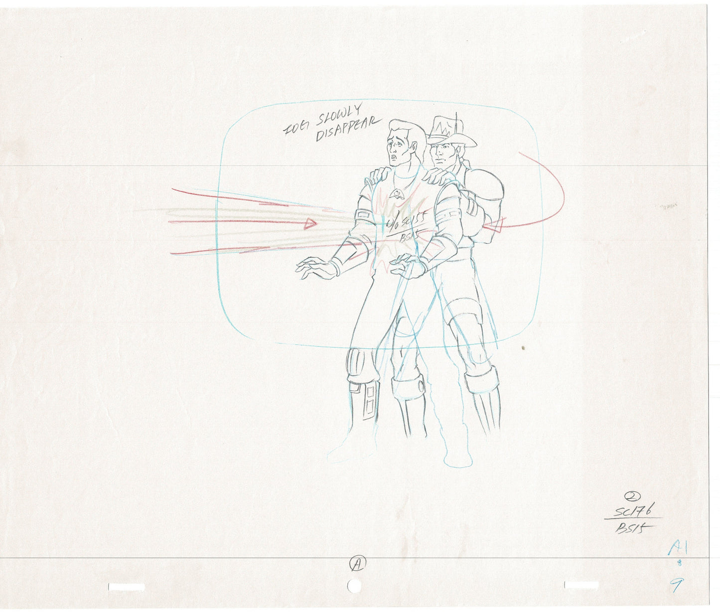 Animation production drawings are where the real art is in animation. We have a whole bunch of these up for sale from this episode. Some have folds, tears, parts that are photocopied, etc. Measures approx 10.5" x 12.5". Yellowed with age.