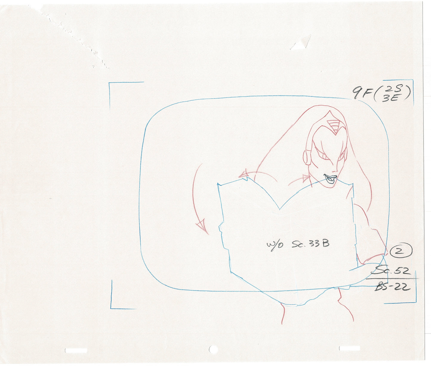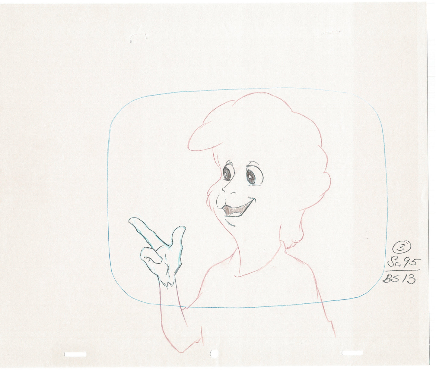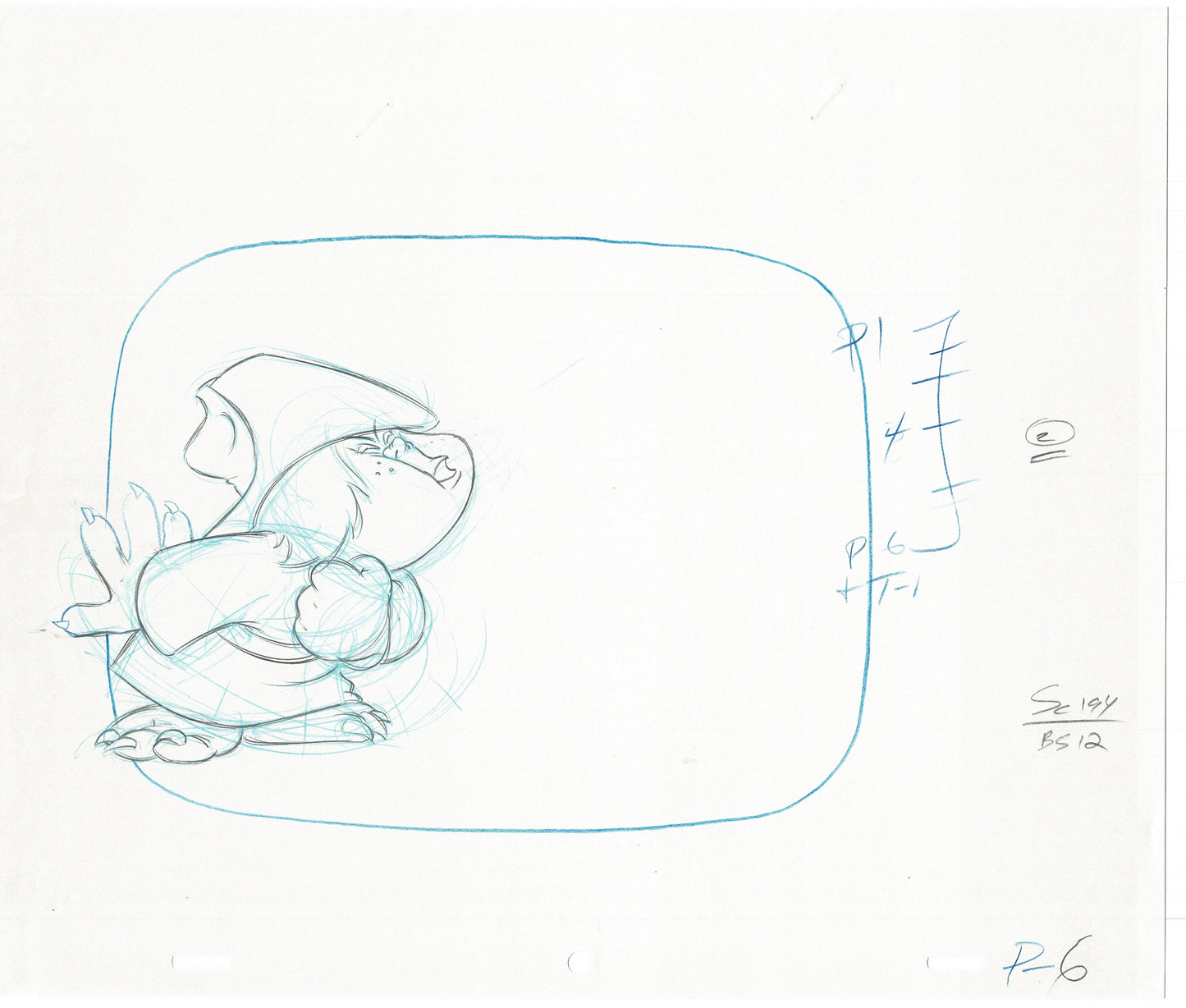 Animation production drawings are where the real art is in animation. We have a whole bunch of these up for sale from this episode. Some have folds, tears, parts that are photocopied, etc. Measures approx 10.5" x 12.5". Yellowed with age.