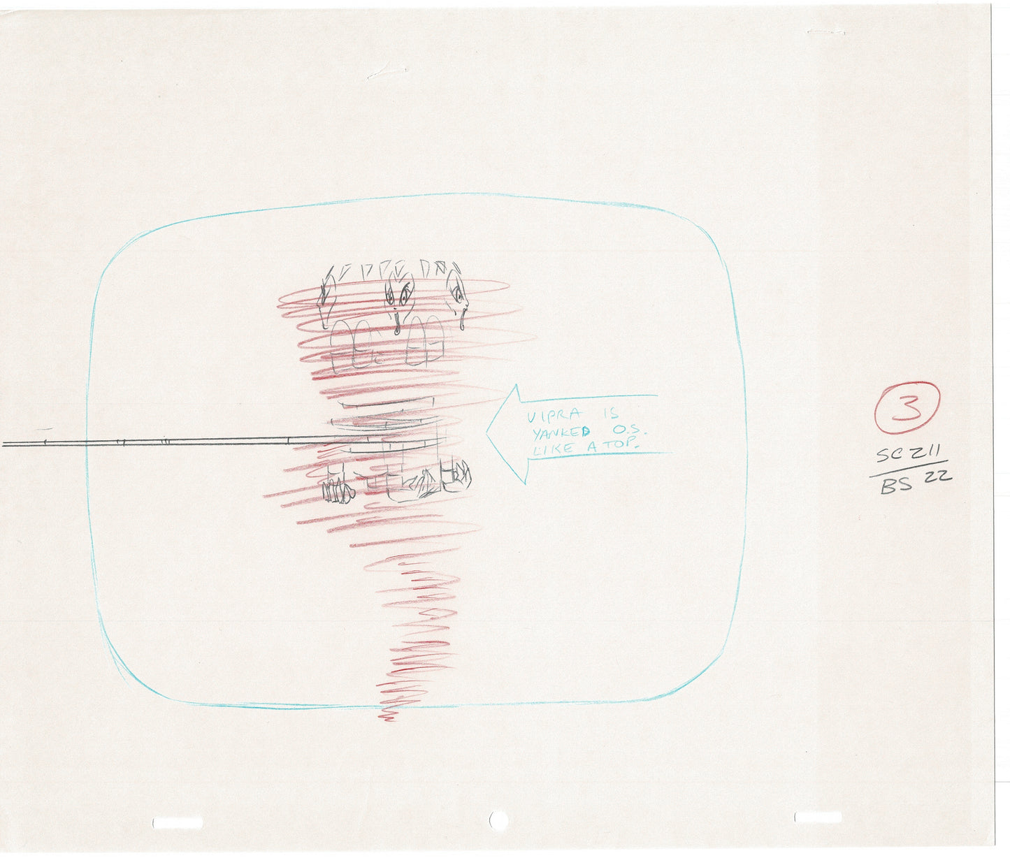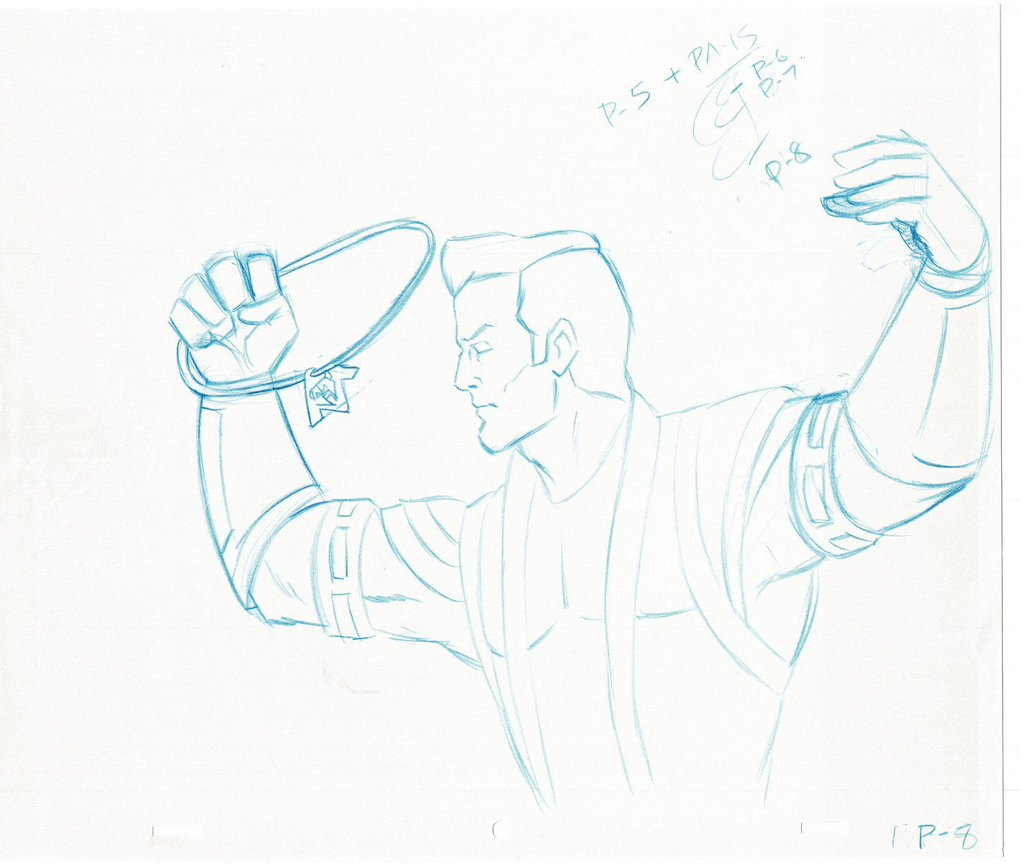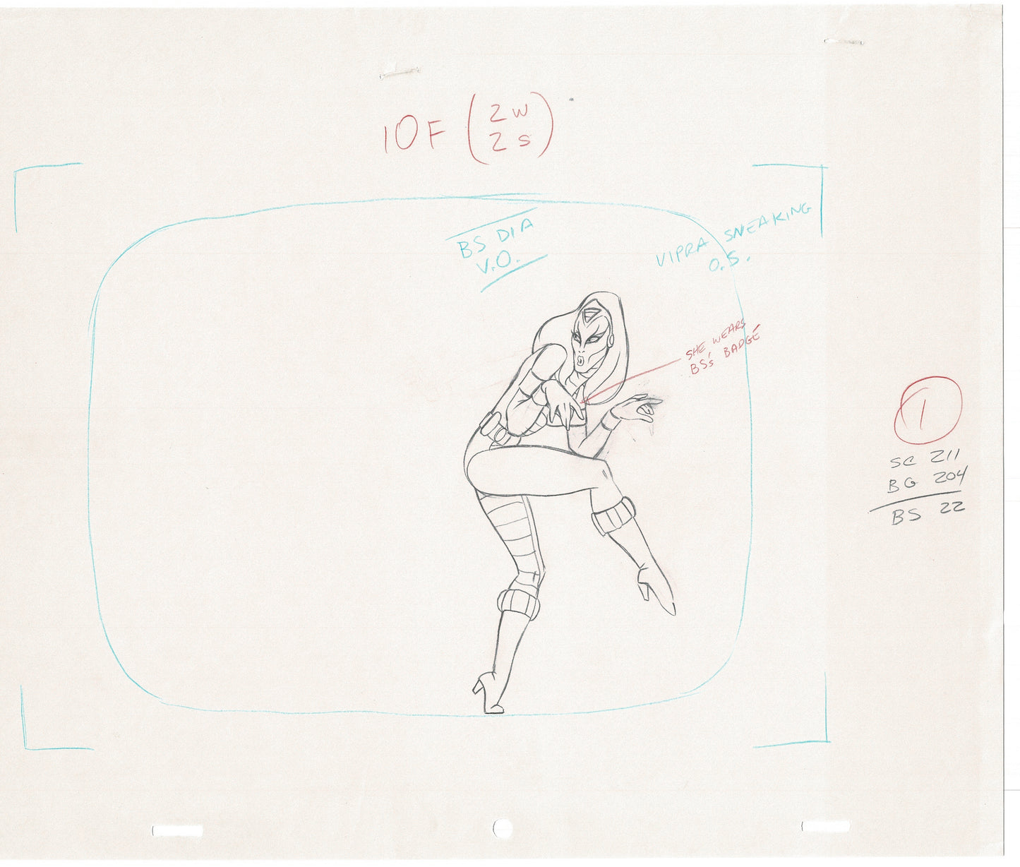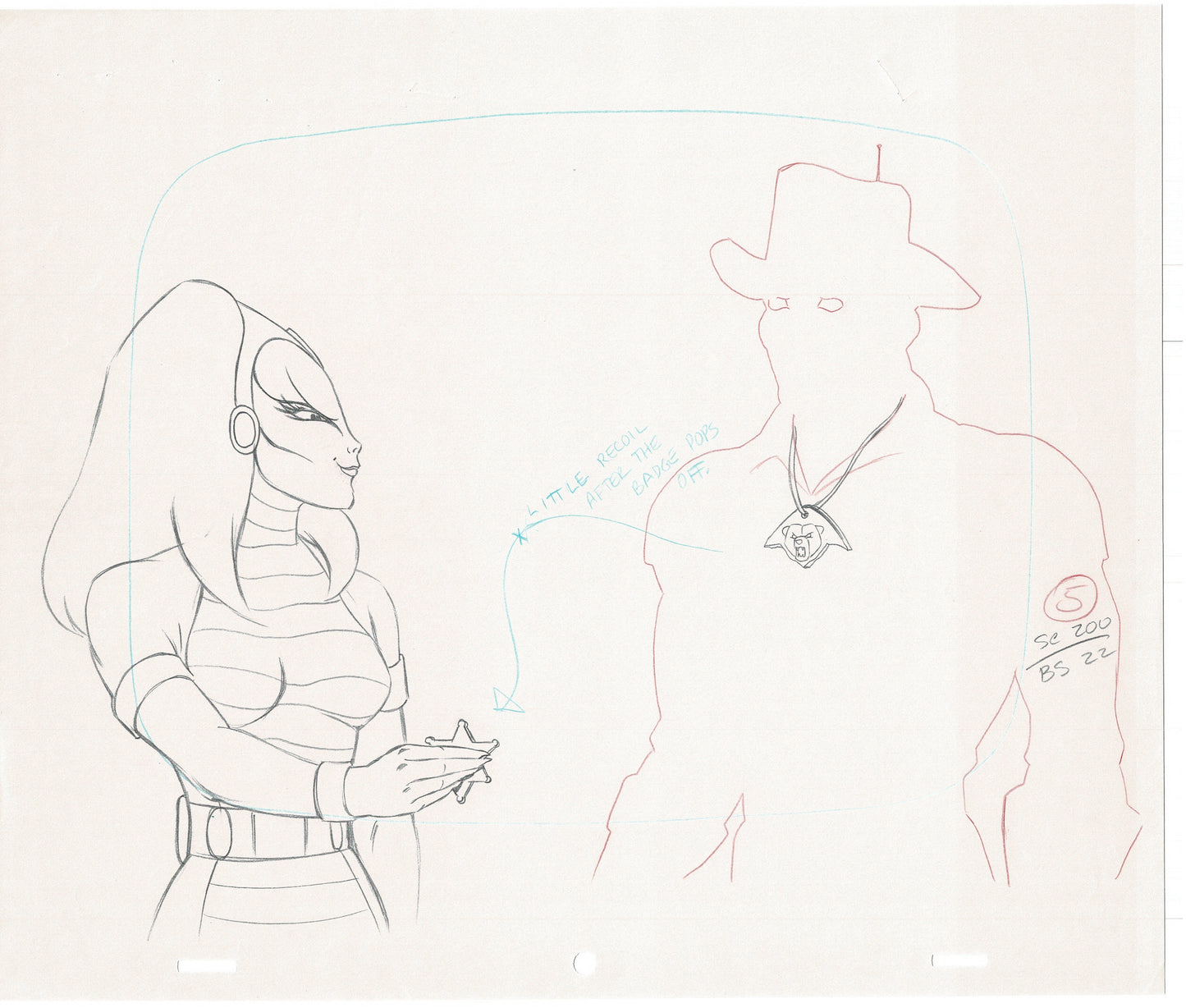 Animation production drawings are where the real art is in animation. We have a whole bunch of these up for sale from this episode. Some have folds, tears, parts that are photocopied, etc. Measures approx 10.5" x 12.5". Yellowed with age.