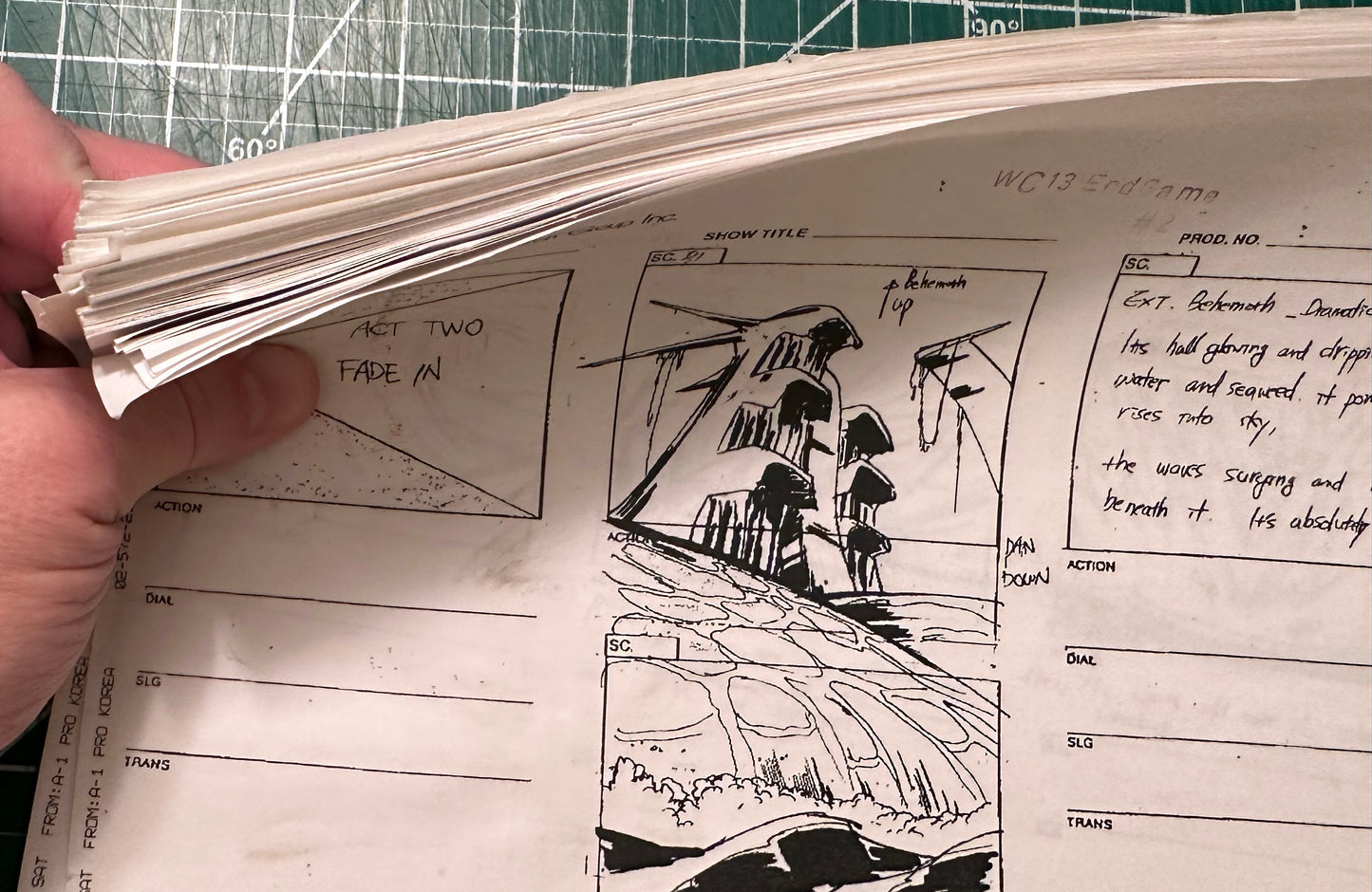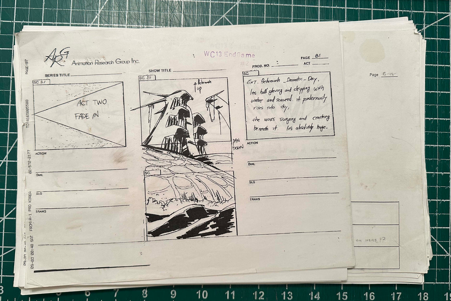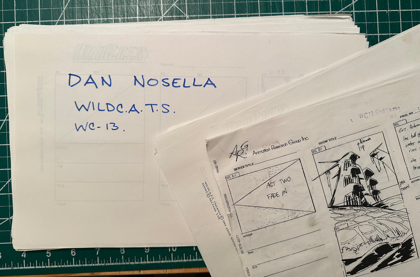 From the 1994/5 Nelvana adaptation of Jim Lee's WildC.A.T.S. comic. This storyboard lot was actually used to create the episode you watched in 1995, "Endgame Part II" which was the final episode, episode #13. These are all from Act II we believe (it starts with Act II). The lot includes the following:
