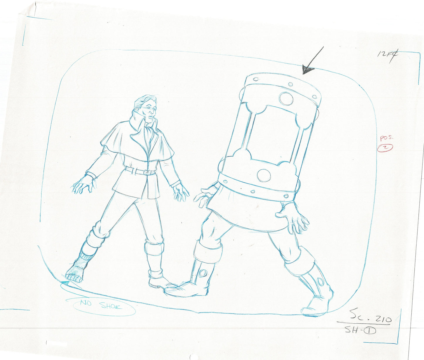 Animation production drawings are where the real art is in animation. We have a whole bunch of these up for sale from this episode. Some have folds, tears, parts that are photocopied, etc. Measures approx 10.5" x 12.5". Yellowed with age.