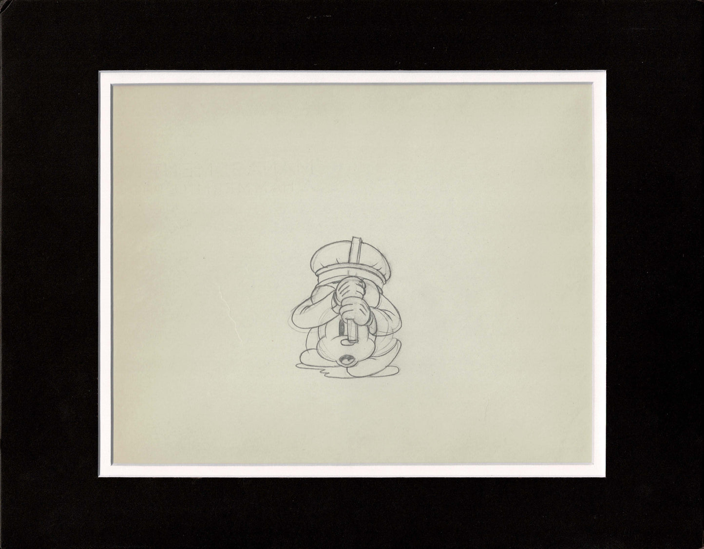 A great drawing of MICKEY MOUSE! These early ones are quite rare. It is from Walt Disney's Mickey's Service Station from 1935. It's the first team-up of Mickey, Donald and Goofy! It was directed by Ben Sharpsteen. Legendary animators who worked on this short included Milt Kahl, Eric Larson, Wolfgang (Woolie) Reitherman, Art Babbitt.