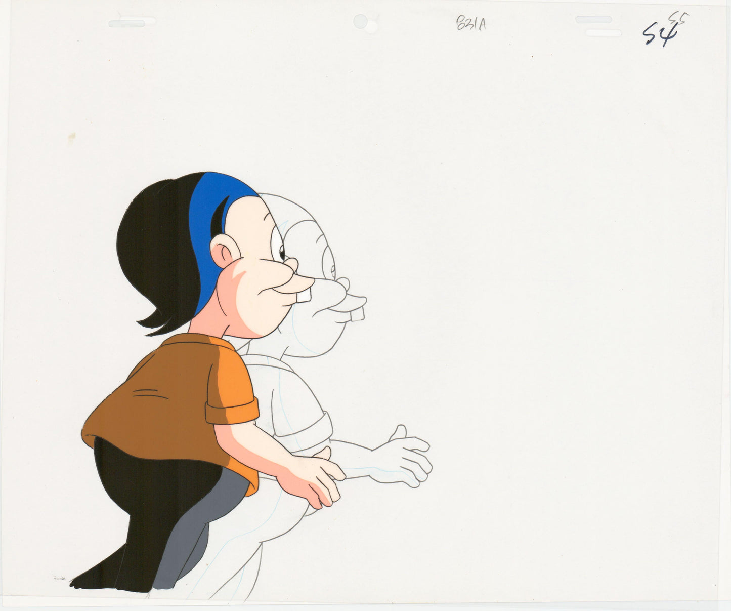 An original production animation cel, actually used to make the 2000 DIC film, MONSTER MASH. The movie featured Frankenstein, the Wolfman and Count Dracula. It was a direct-to-video "animated musical comedy horror film." Hard to believe that was almost 20 years ago! We'll include a Charles Scott Gallery COA. Note: drawing is stuck to back of cel.