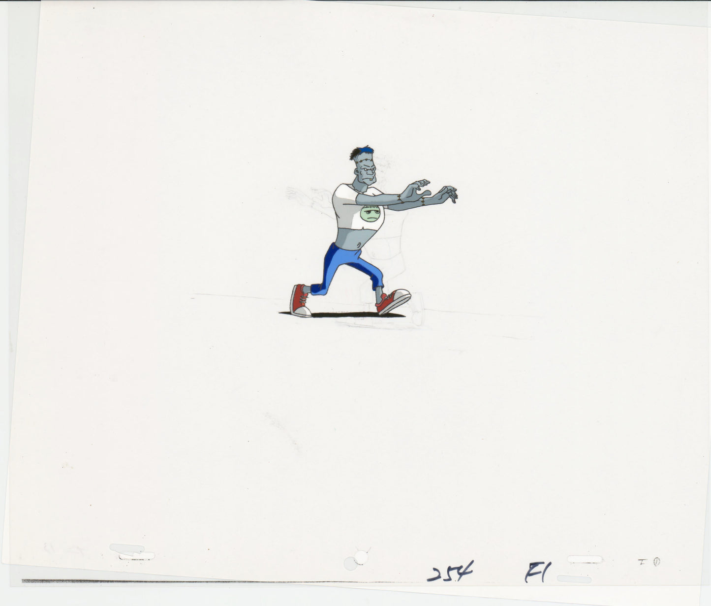 An original production animation cel, actually used to make the 2000 DIC film, MONSTER MASH. The movie featured Frankenstein, the Wolfman and Count Dracula. It was a direct-to-video "animated musical comedy horror film." Hard to believe that was almost 20 years ago! We'll include a Charles Scott Gallery COA. Note: drawing is stuck to back of cel.