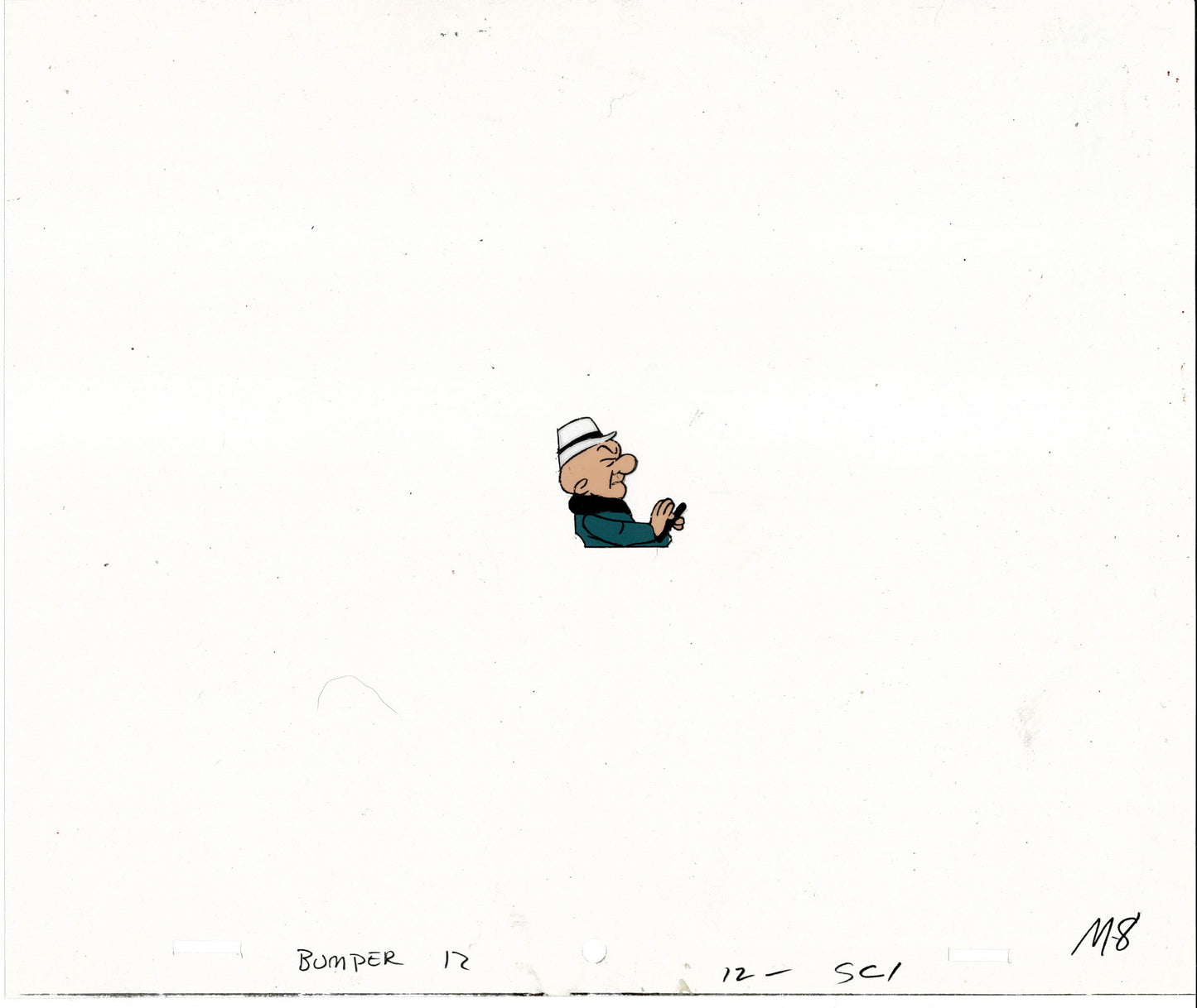 A cute cel of Mr. Magoo! He came to Depatie-Freleng in 1977 for his last appearance until the 1990's! This is from a bumper for What's New, Mr. Magoo? (Bumper #8) Cel measures approximately 10.5" x 12.5" and comes with a color laser background.