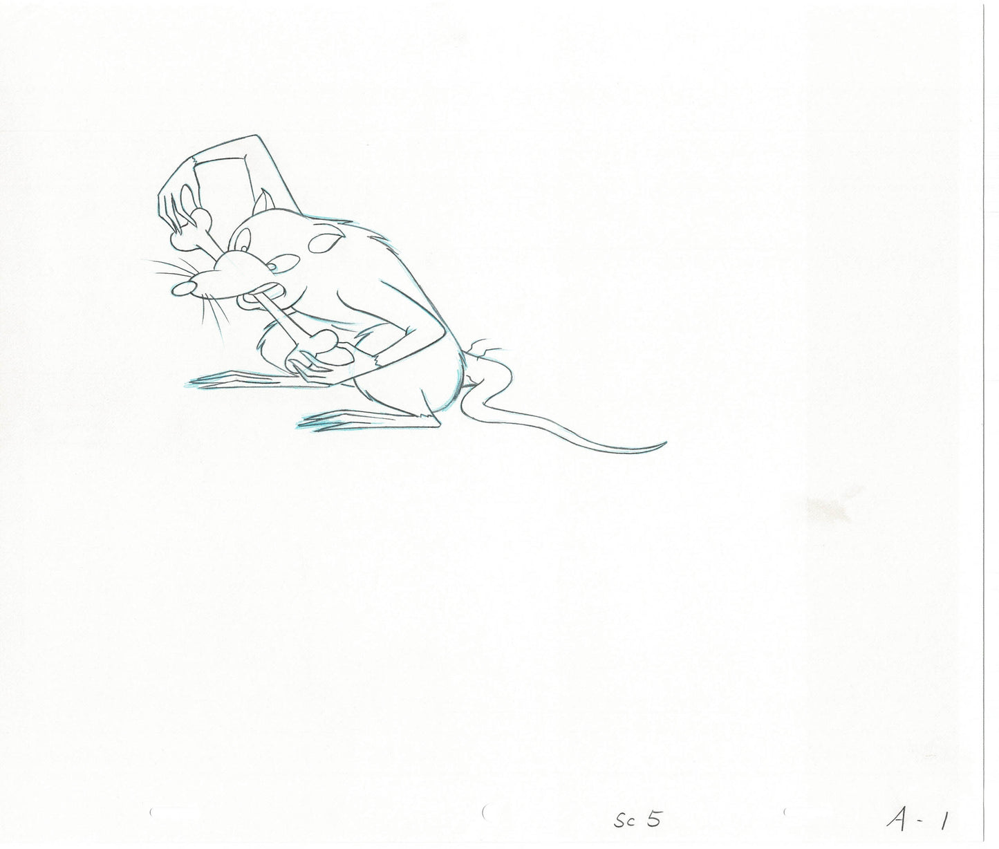 This is a great one! The rat problem has been a big issue in New York City for many years, and in 2000 they started a campaign called "Send Rats Packin'" which still goes on to this day! They had at least one commercial/PSA featuring animated rats and garbage cans. These 2 drawings were used to make the animation in that commercial! They're hand drawn and one-of-a-kind. Sadly, we haven't found the commercial online yet, but if you know of it, please let us know!