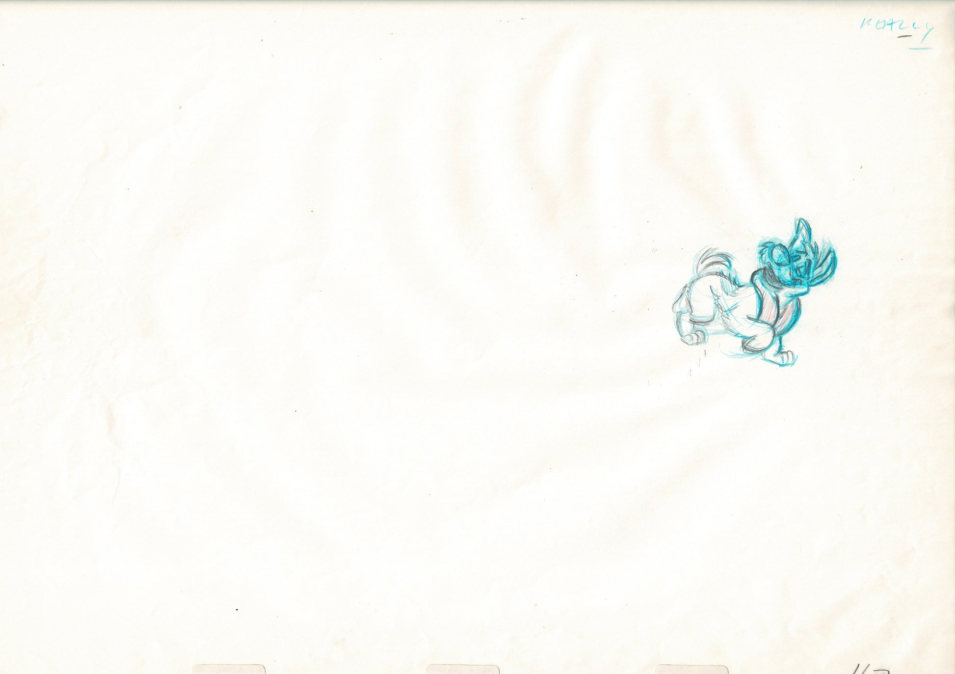 This is an amazing rough production drawing in graphite of DODGER during the energetic "Why Should I Worry" song sequence, beginning at the 8:43 timestamp in the movie. Drawing is 16-field measures approximately 12.5" x 17". We've shown a close-up as the first picture.