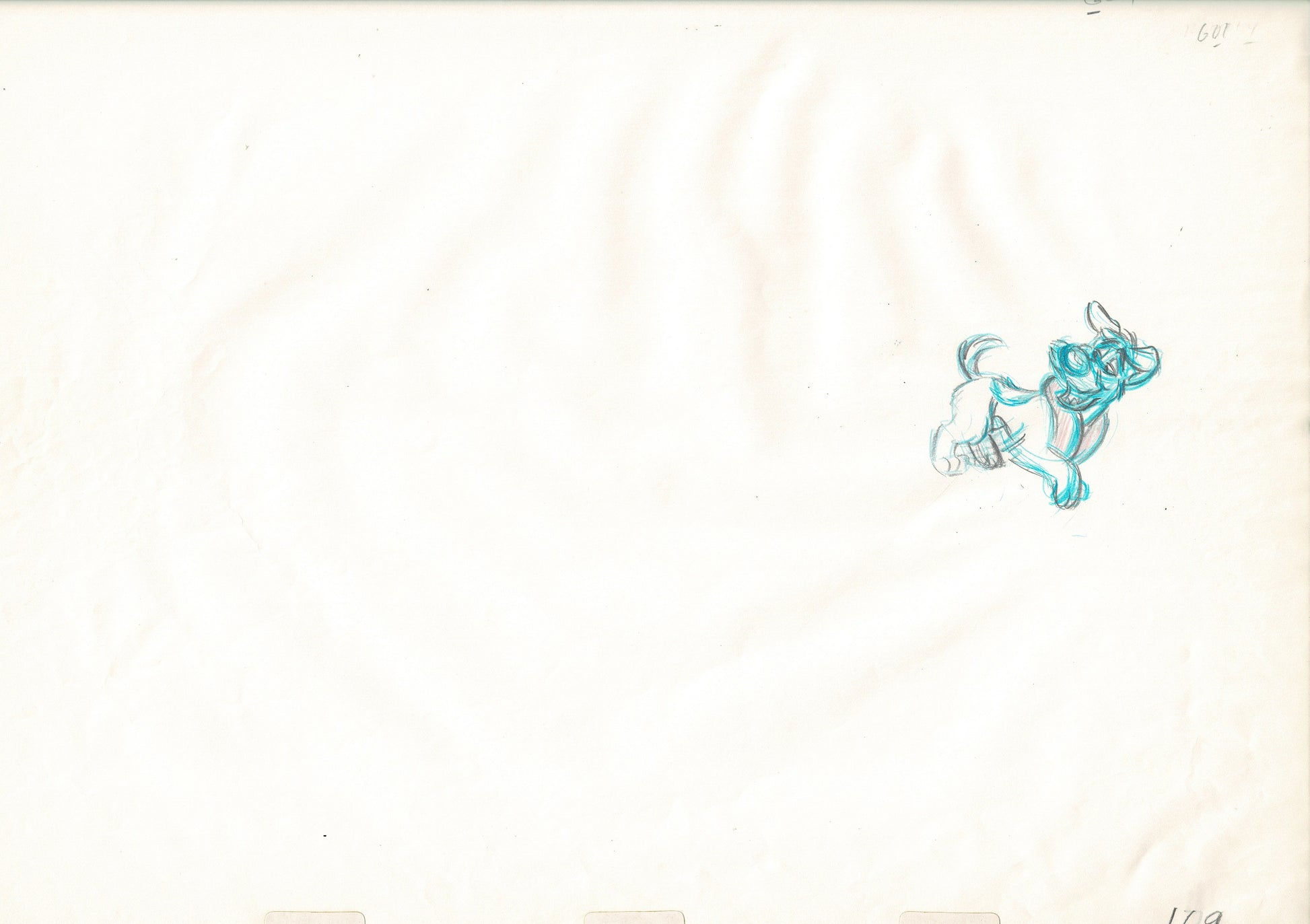 This is an amazing rough production drawing in graphite of DODGER during the energetic "Why Should I Worry" song sequence, beginning at the 8:43 timestamp in the movie. Drawing is 16-field measures approximately 12.5" x 17". We've shown a close-up as the first picture.