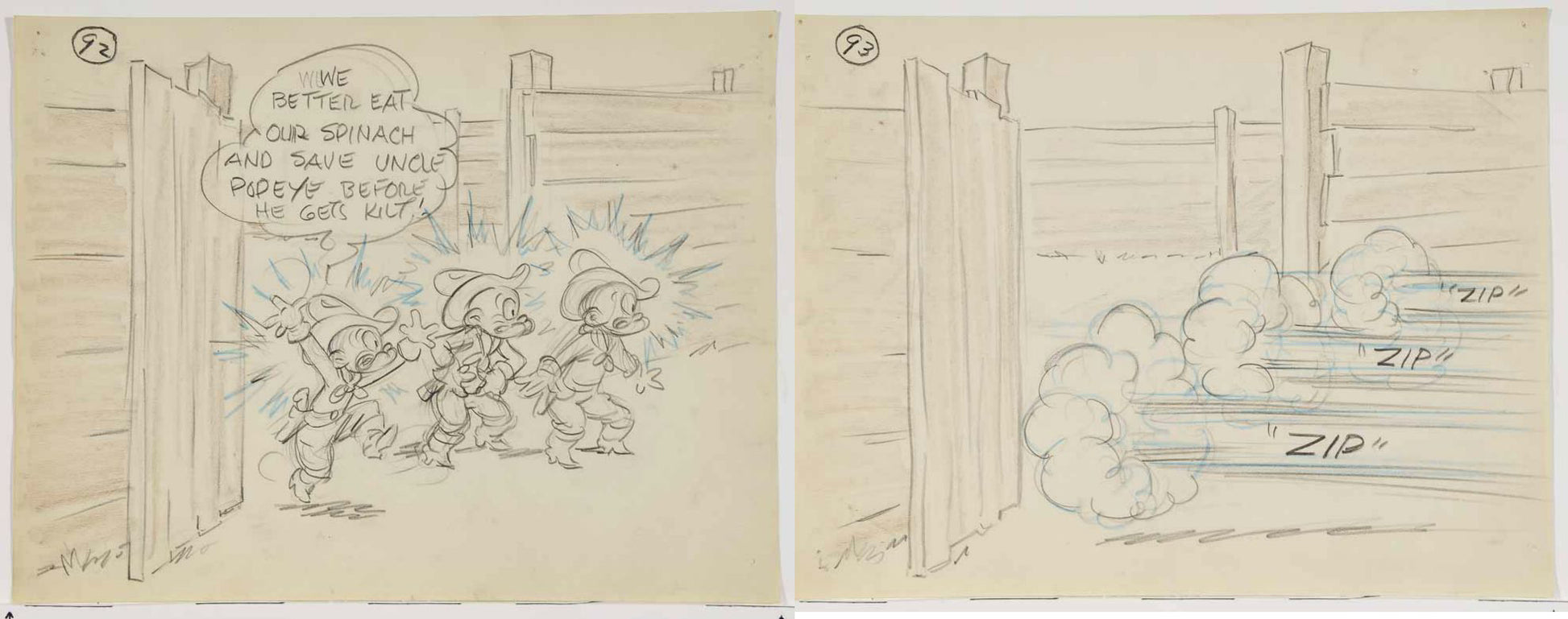 Popeye 1952 2 LOT Original Animation Production Storyboard from Famous Studios 923