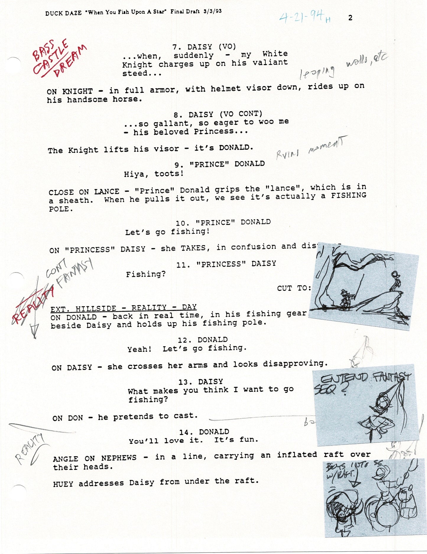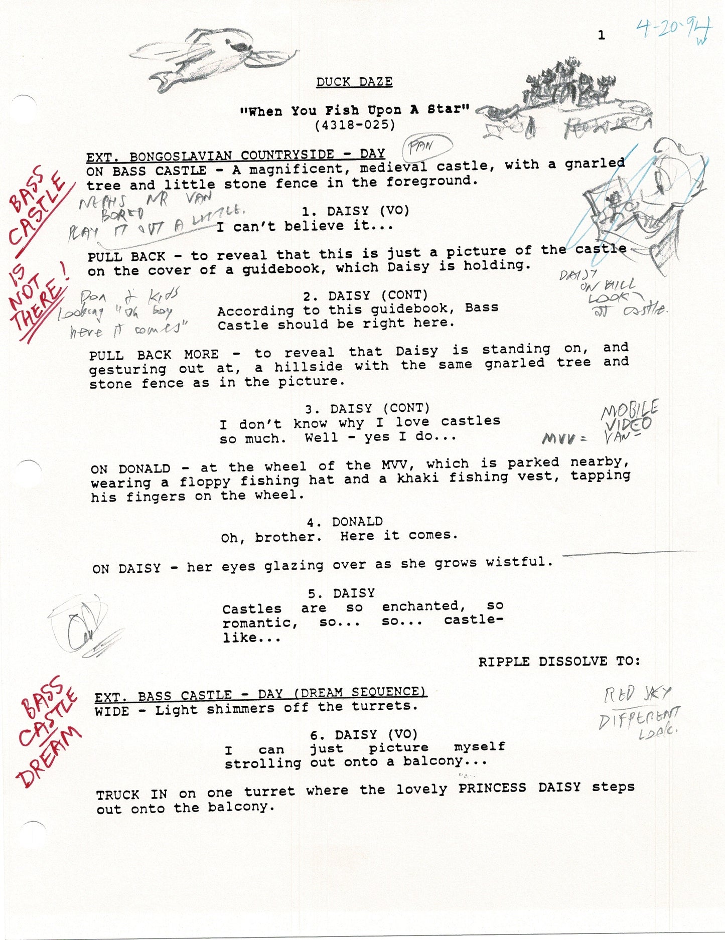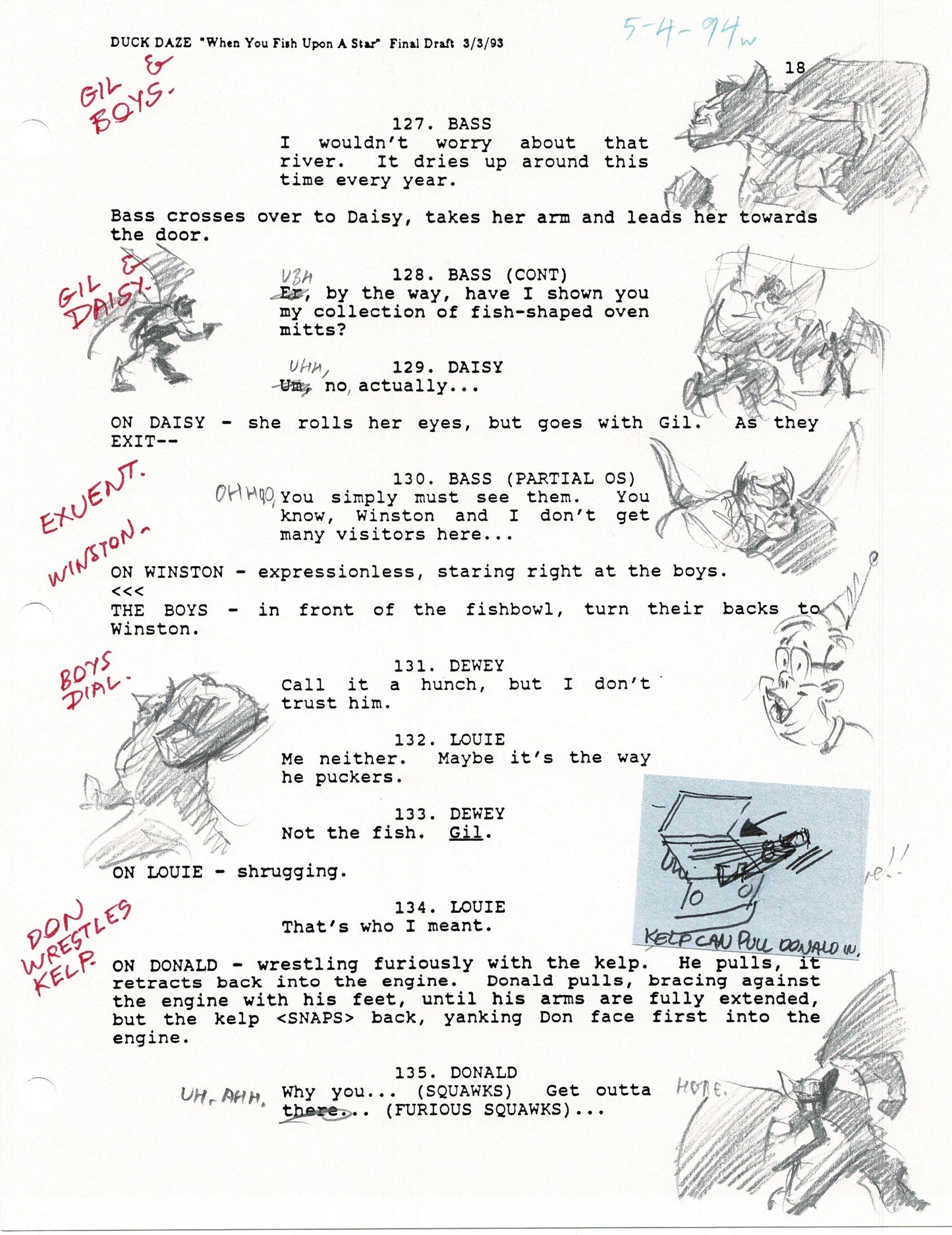 He did work on several episodes. And we have four scripts from episodes he worked on. And BOY did he love to sketch on his scripts!!! These are from his personal files and were used by him to make the episodes! Note: "Duck Daze" was renamed "Quack Pack" before it began airing.