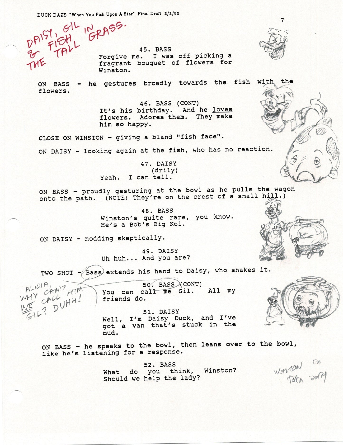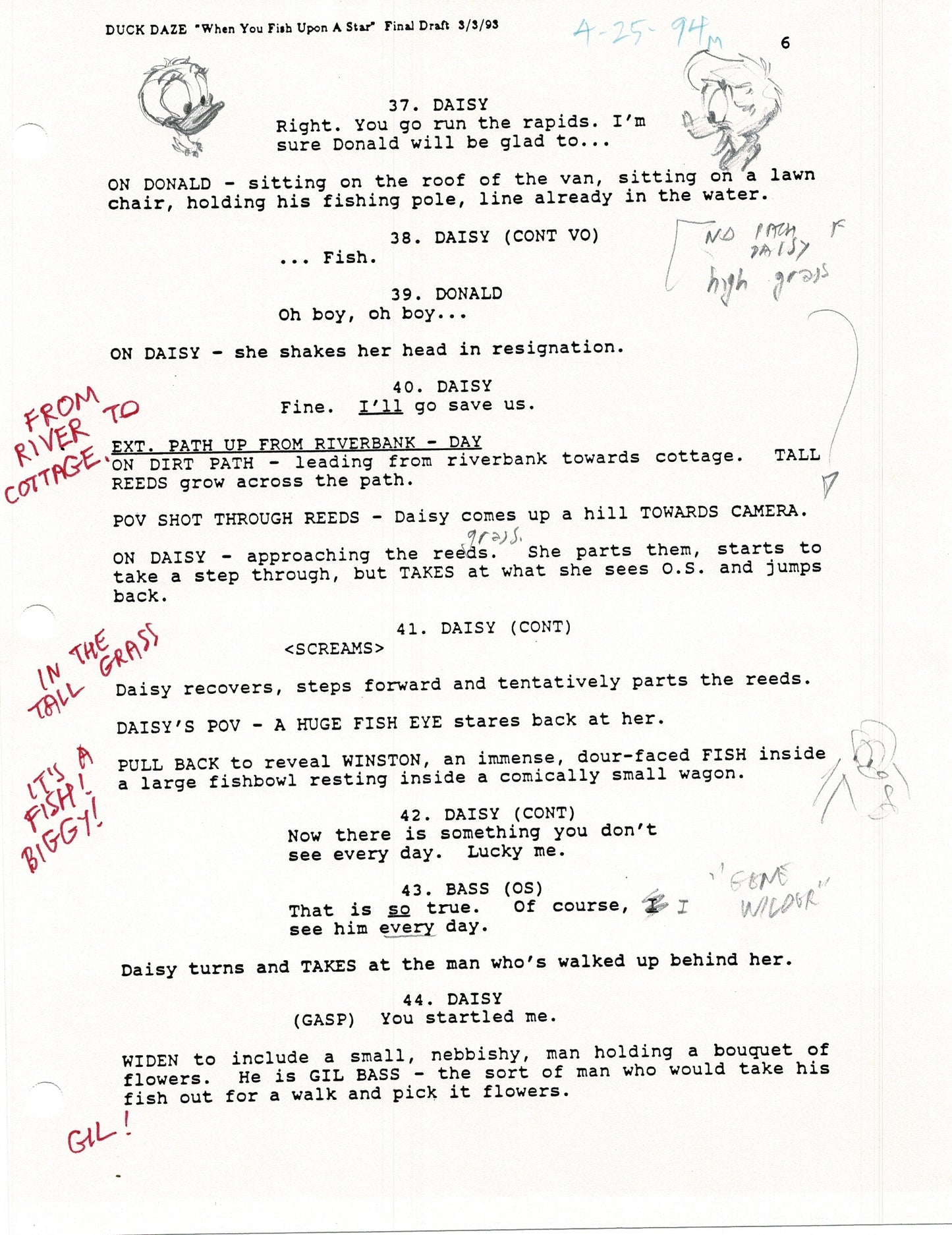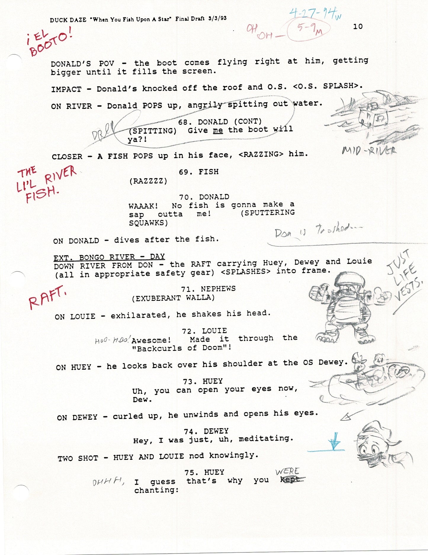 He did work on several episodes. And we have four scripts from episodes he worked on. And BOY did he love to sketch on his scripts!!! These are from his personal files and were used by him to make the episodes! Note: "Duck Daze" was renamed "Quack Pack" before it began airing.