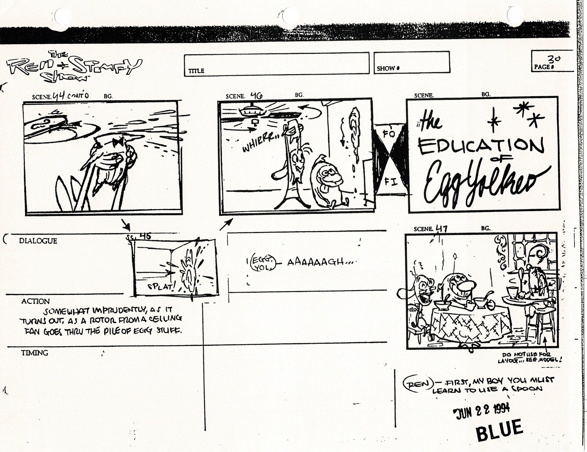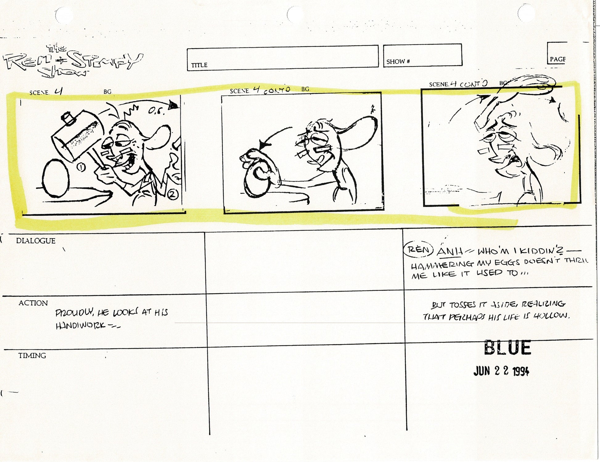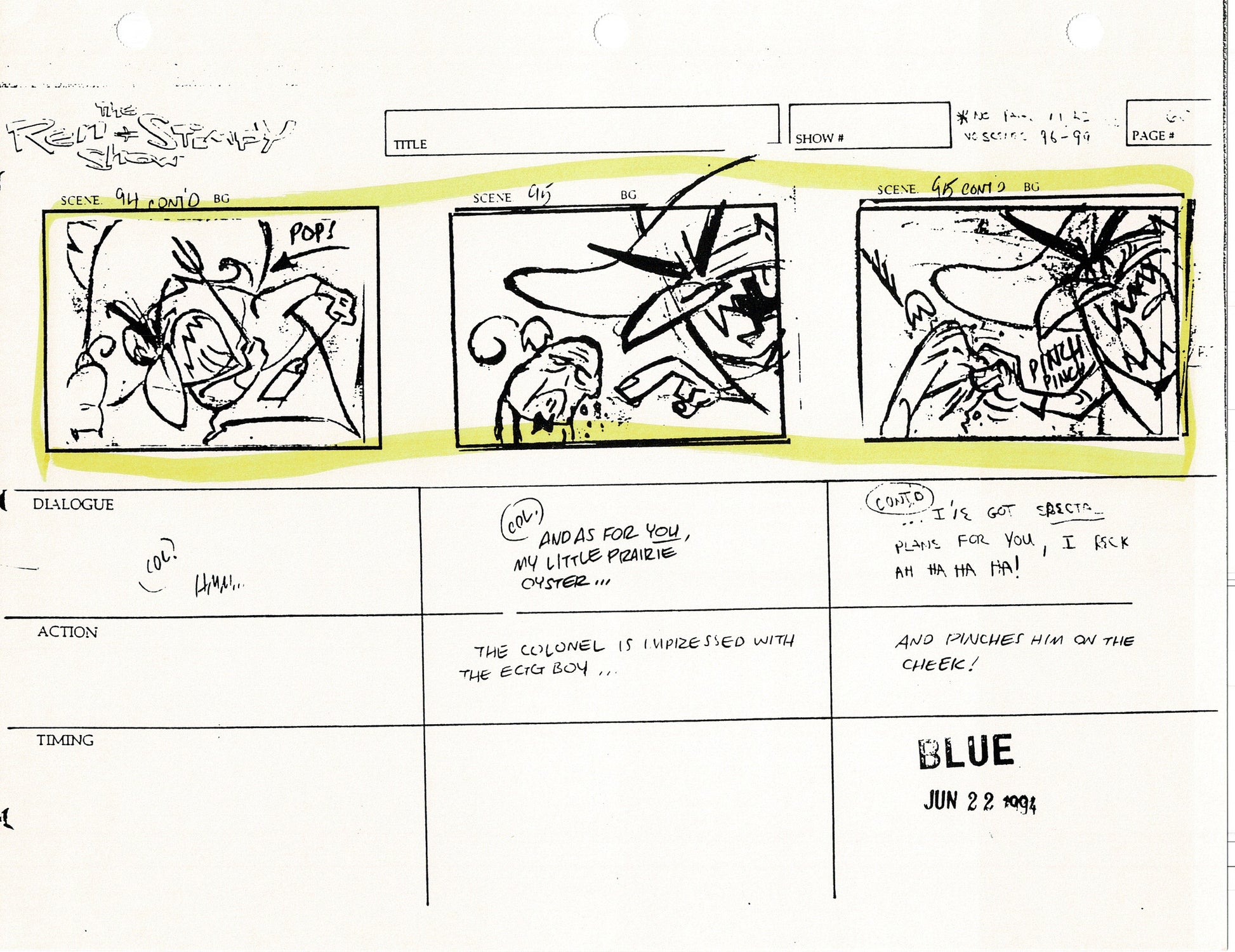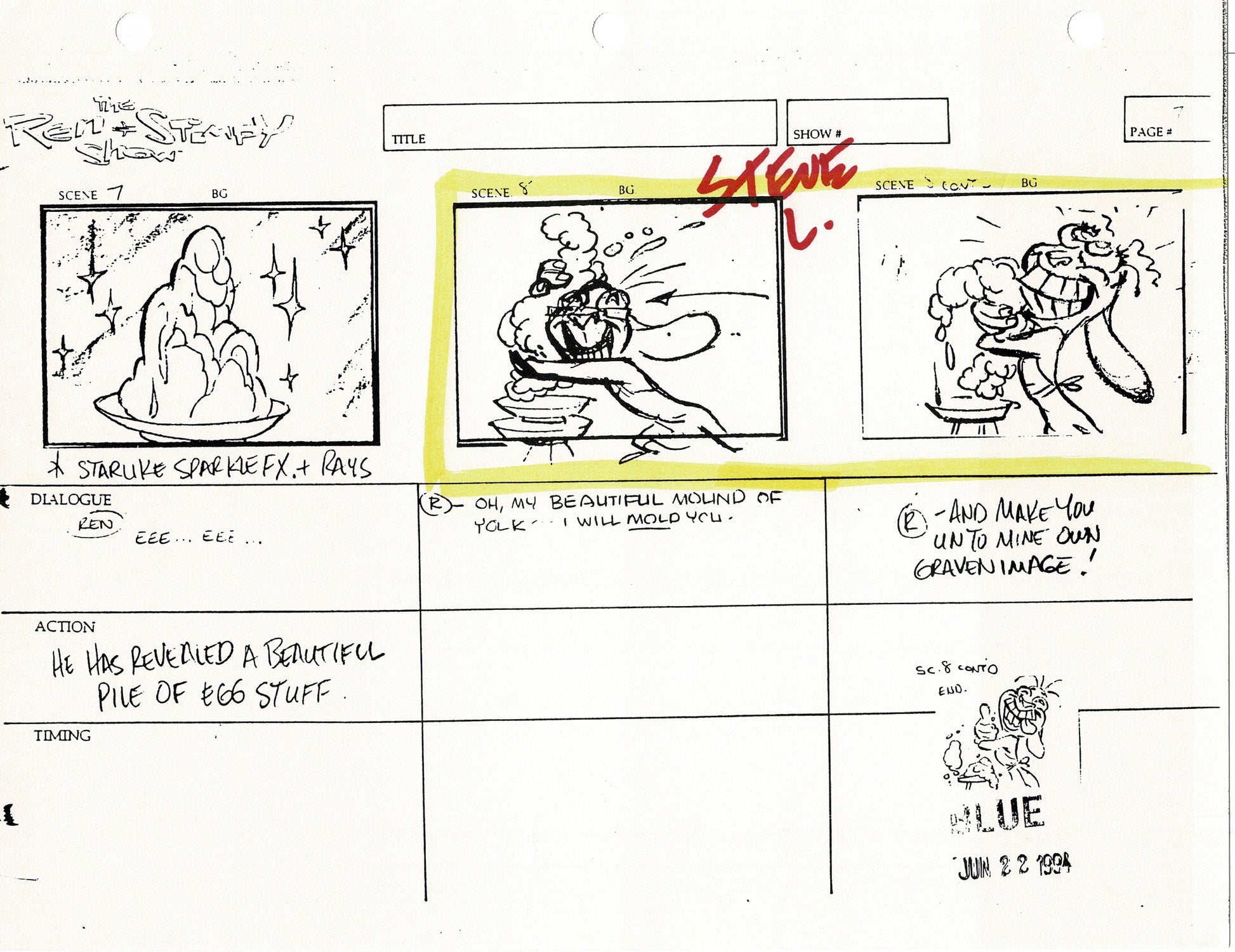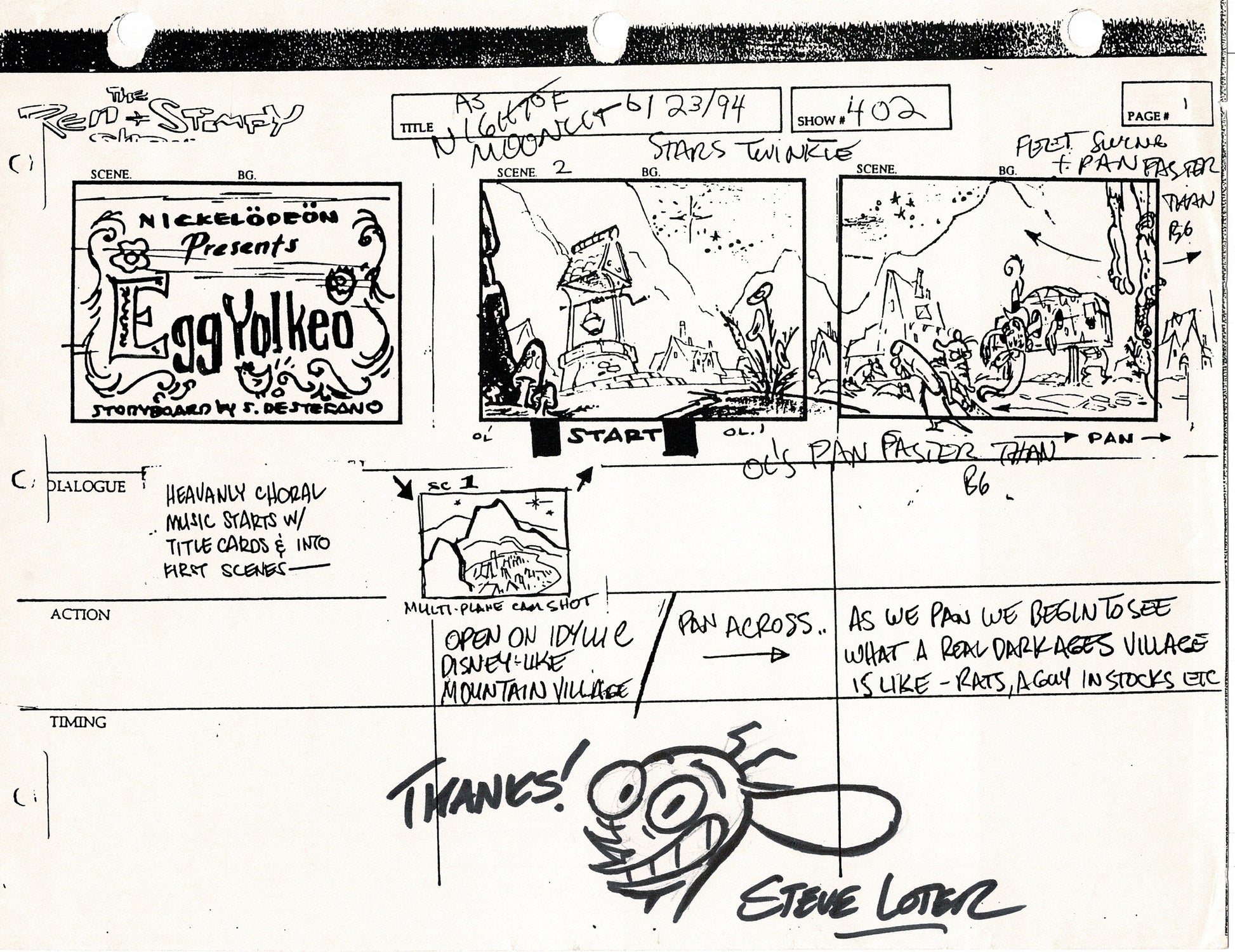 Ren and Stimpy Production Storyboard Copy Lot 87 Pgs with Sketch and Signed Nickelodeon 1994 Egg Yolkeo
